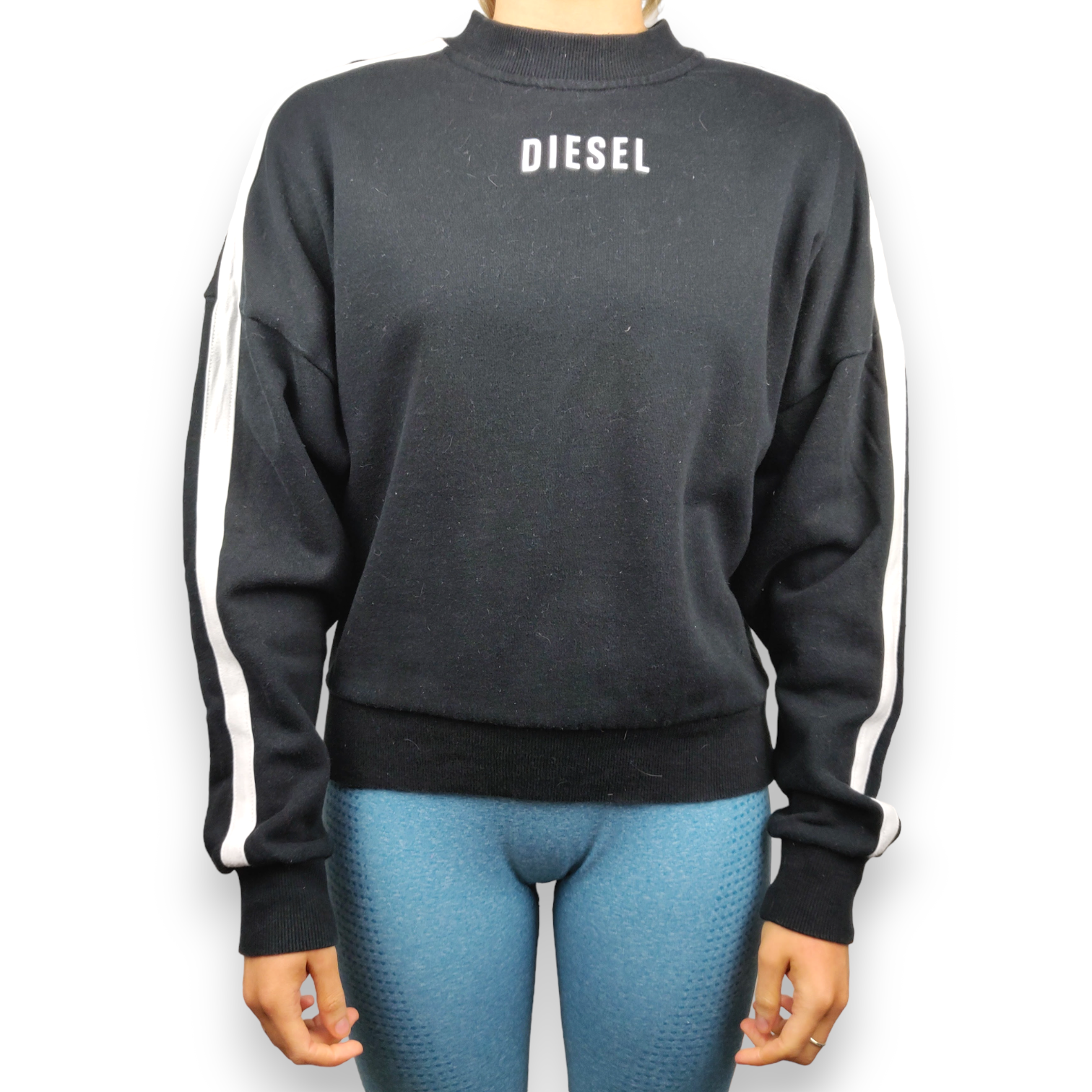Diesel Black Spell Out Logo Oversized Pullover Sweatshirt Women Size XS