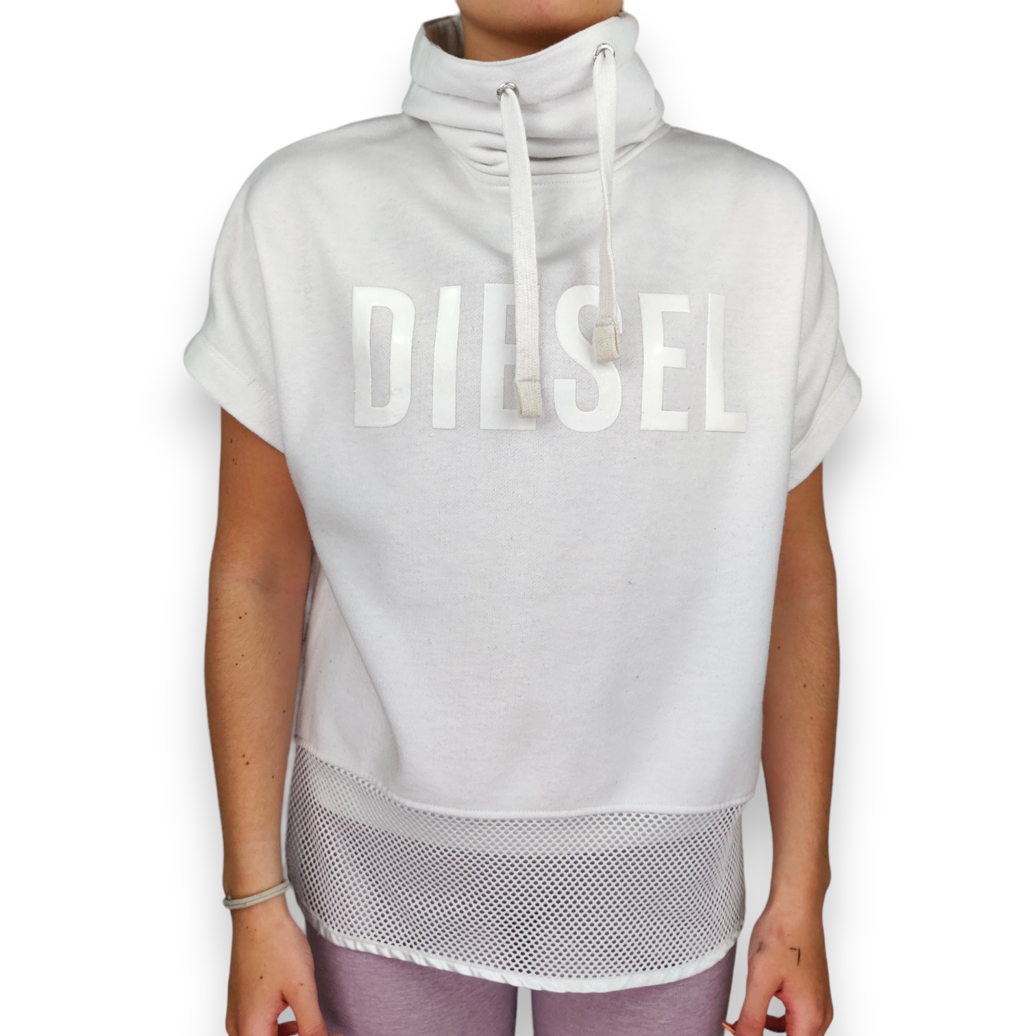 Diesel Vintage White Short Sleeve Pullover High Neck Sweatshirt Women Size XS
