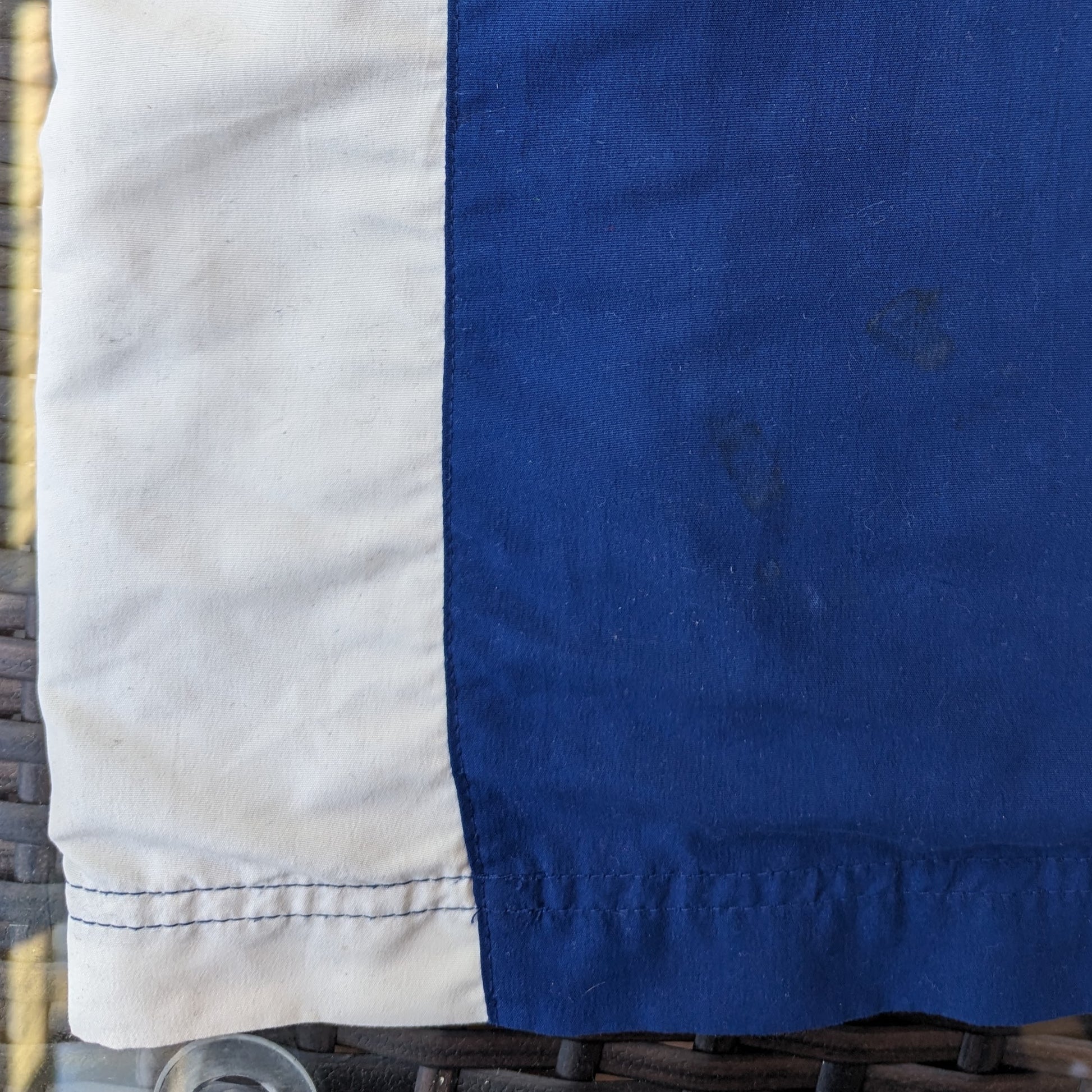 Flaws: Small faint stains on the left lower back, see photos