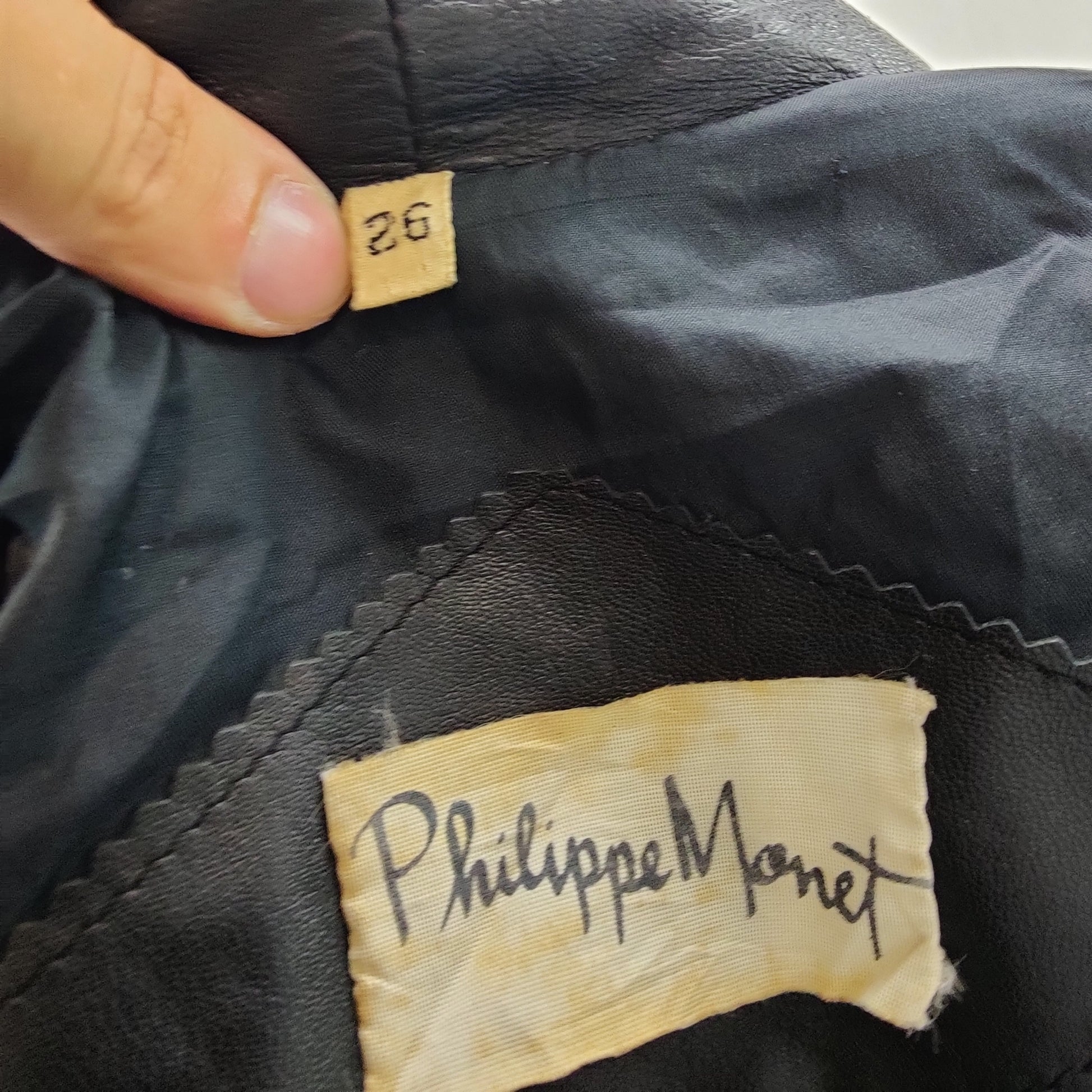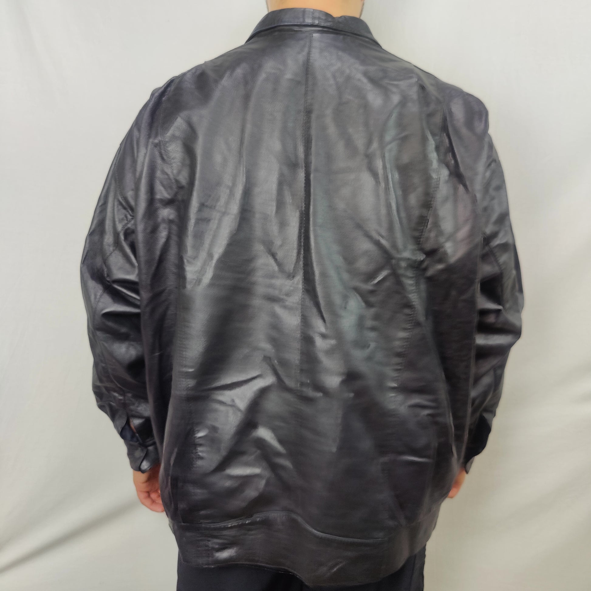 Philippe Monet Vintage Black Leather Jacket Coat Men Size Large