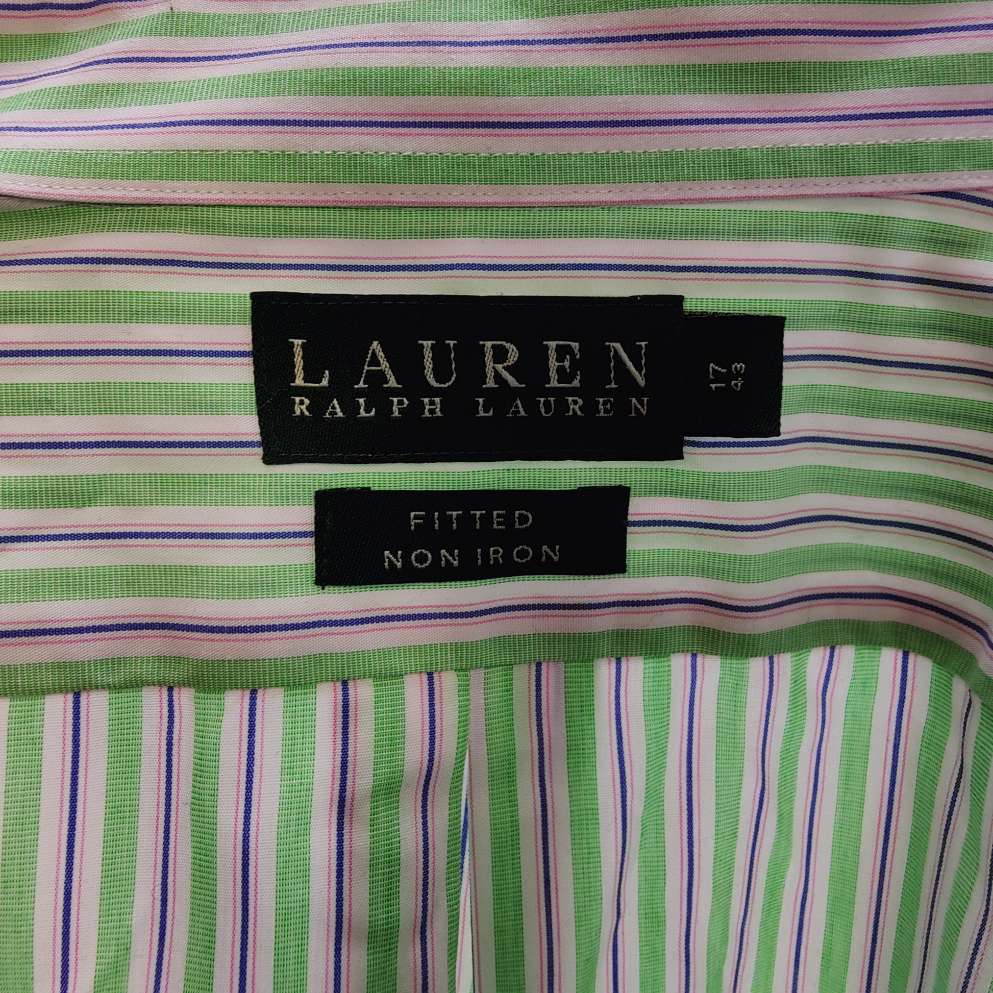 Ralph Lauren White Green Striped Long Sleeve Casual Shirt Men Size Large