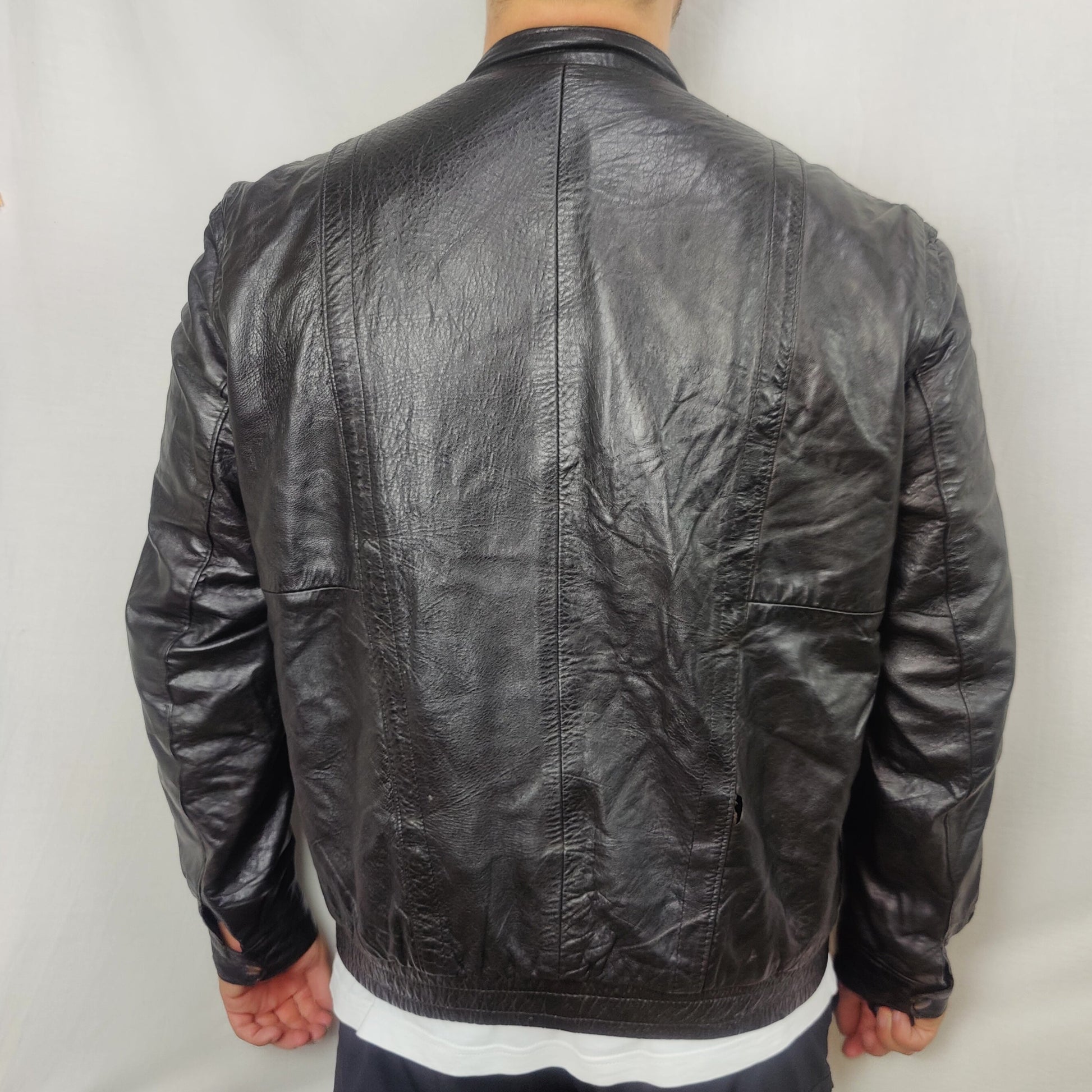 Framic Vintage Black Leather Motorcycle Biker Jacket Men Size XL