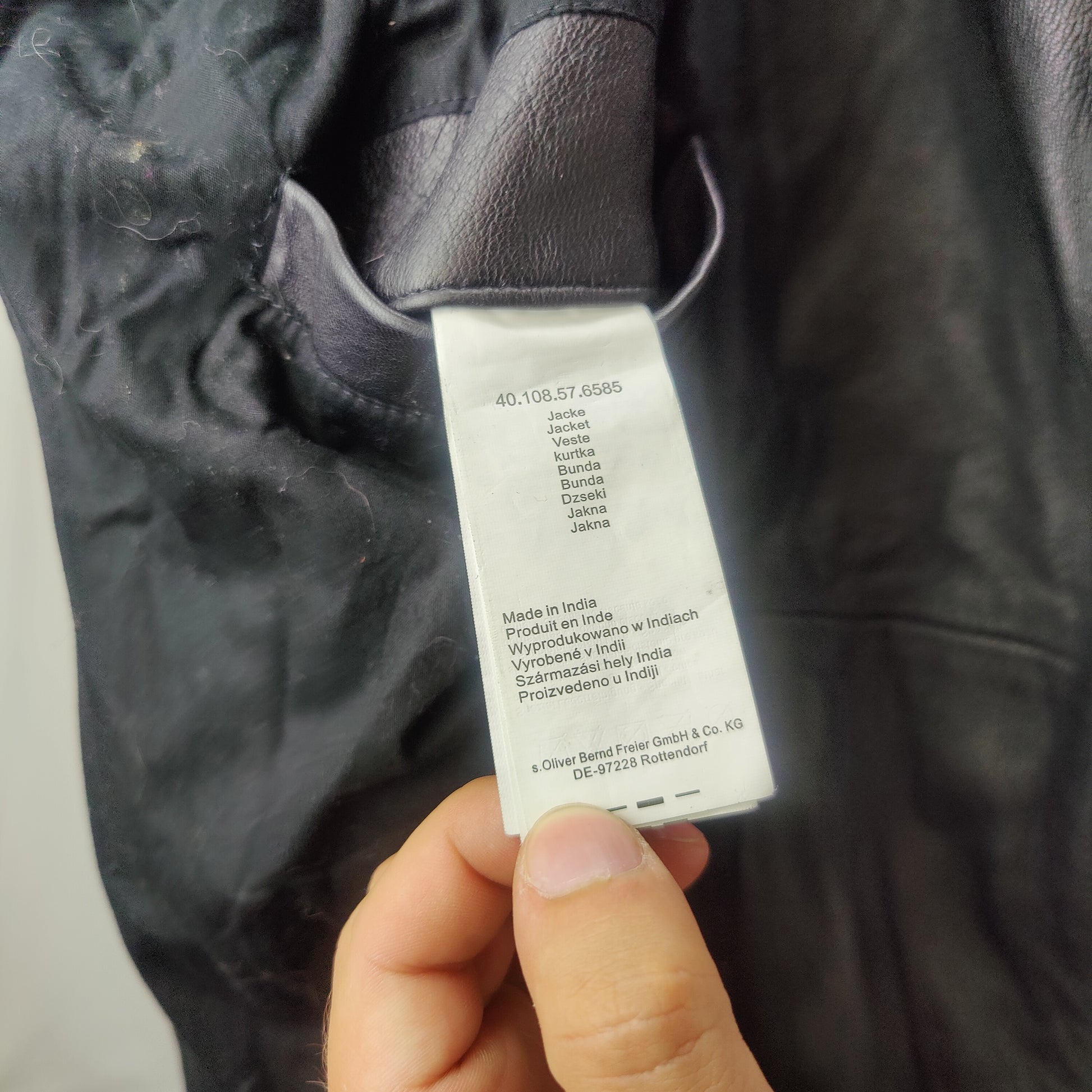 S'Oliver QS Vintage Black Leather Motorcycle Biker Jacket Men Size Large