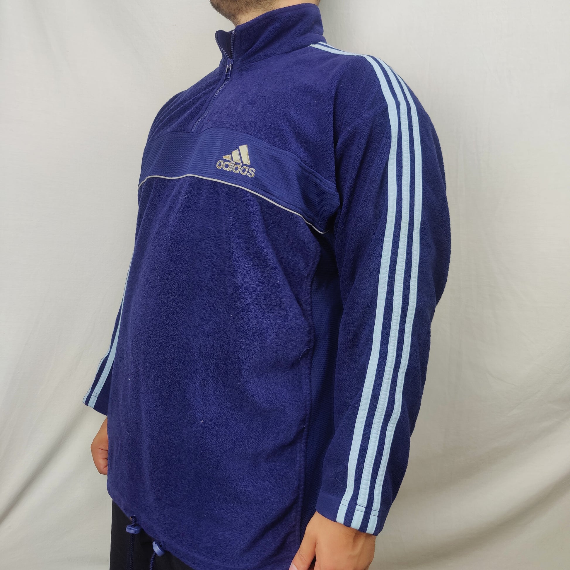 Adidas Vintage Blue Half Zip Fleece Jumper Sweatshirt Men Size Large
