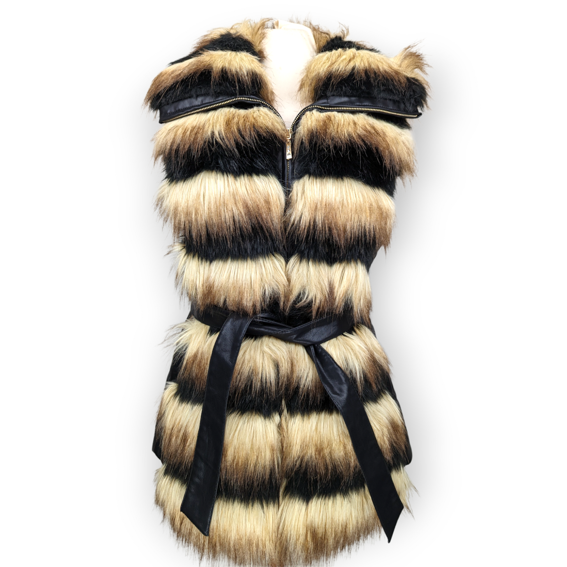 Fellymoon Black/Brown Leather Fur Gilet Vest Jacket Women Size XL