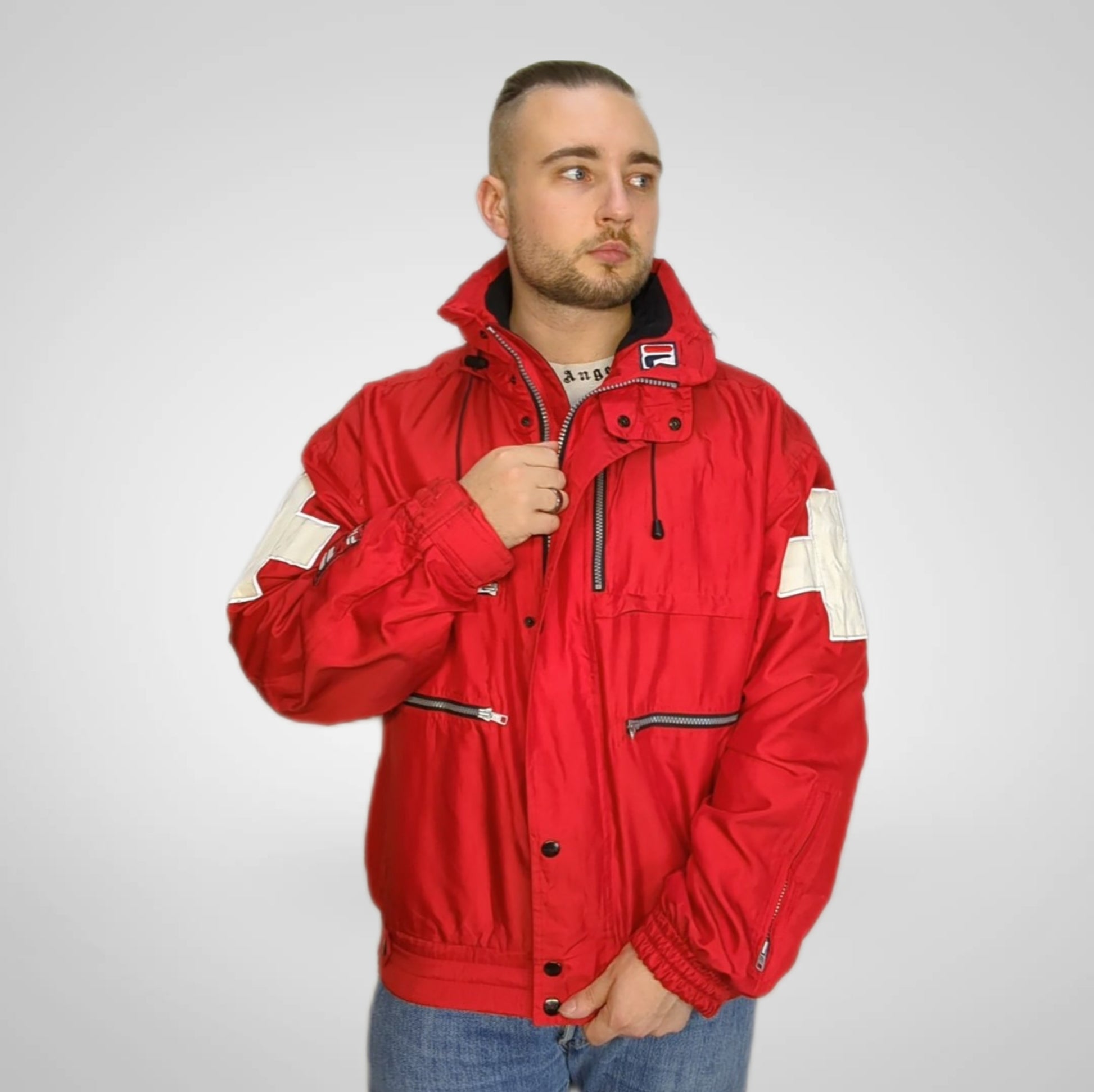 Fila Red Vintage Retro Windbreaker Jacket Men Size Large