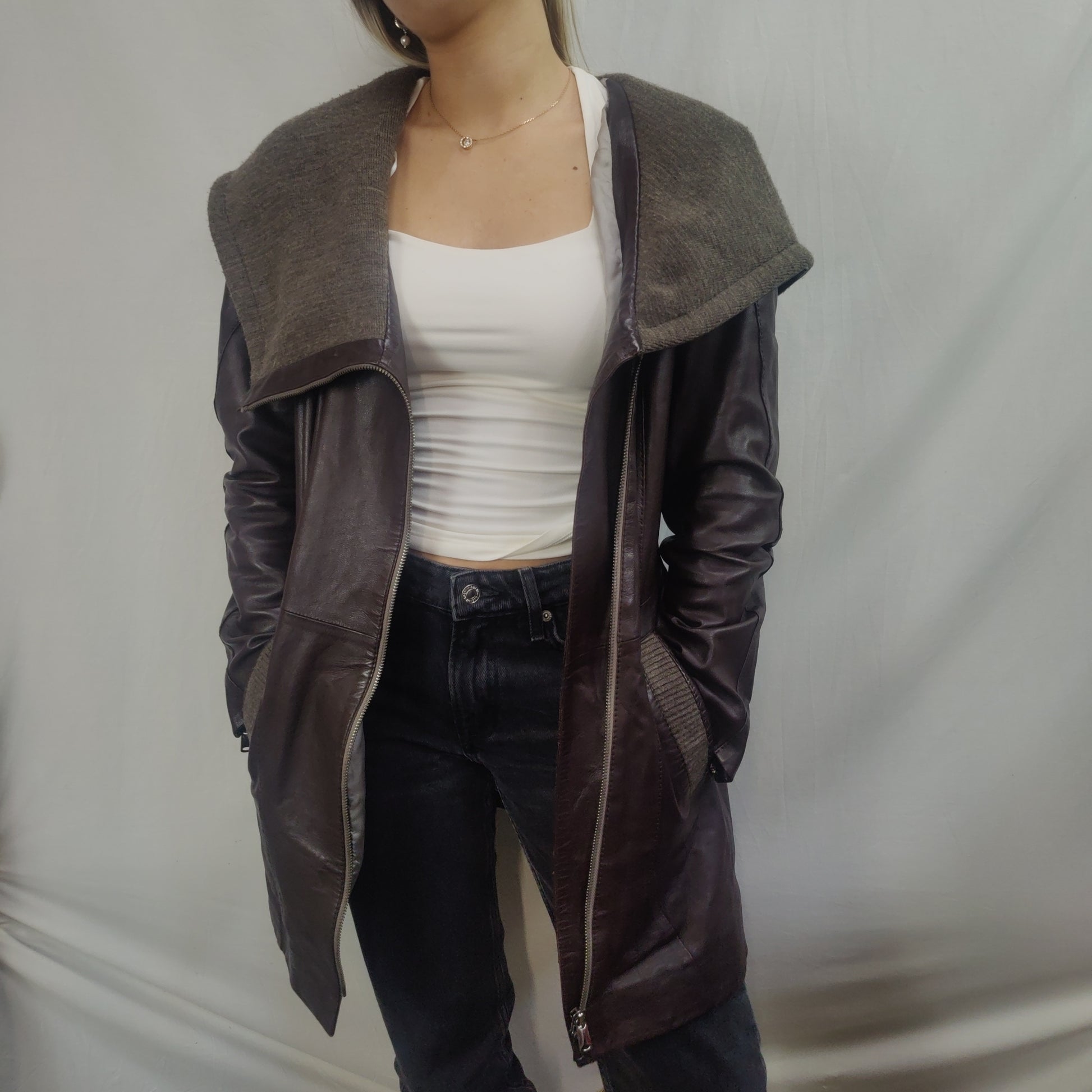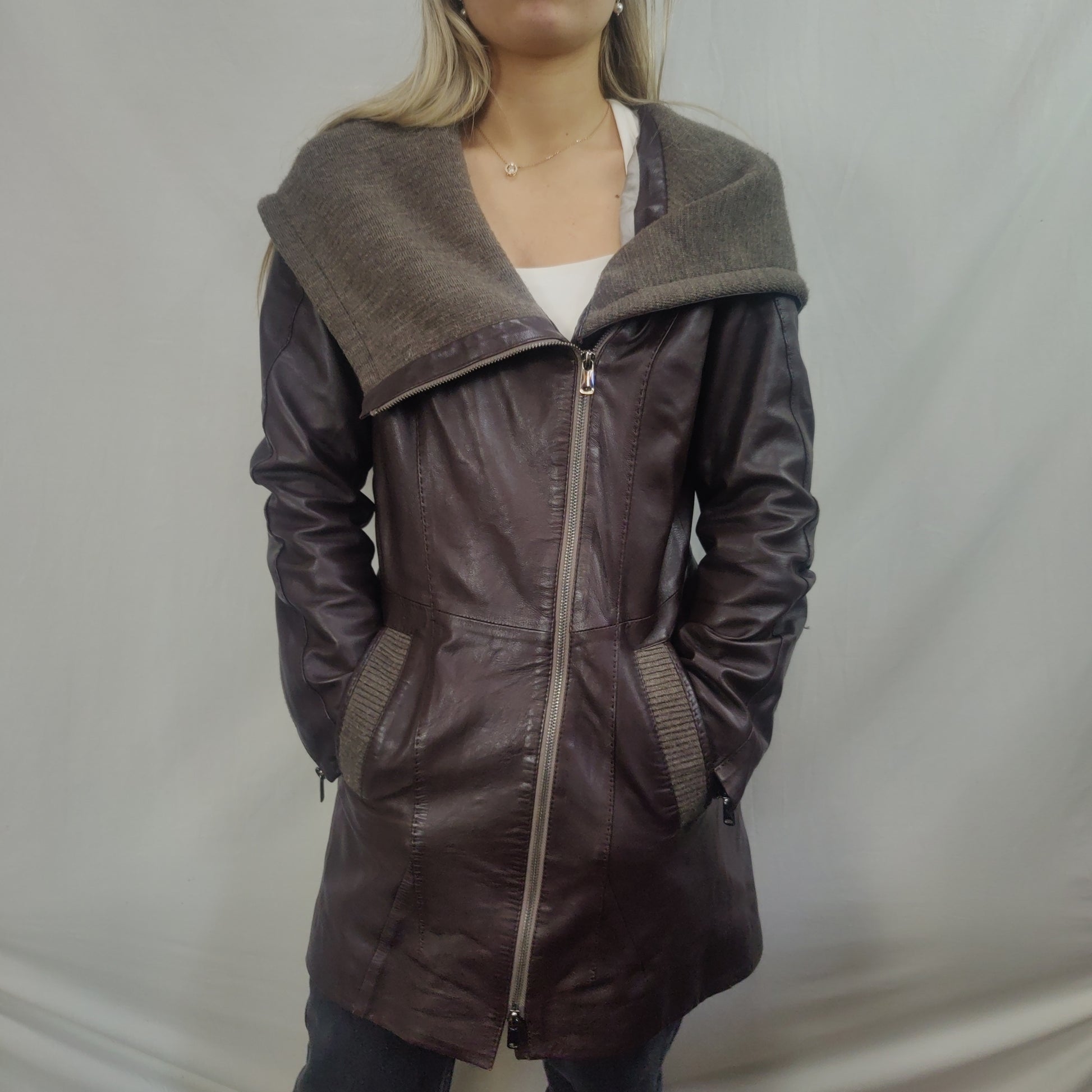 Benny's Shop Vintage Brown Leather Coat Jacket Women Size Large