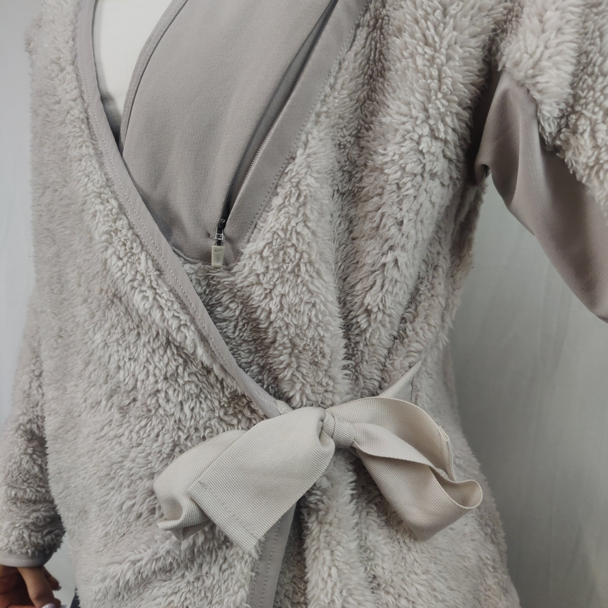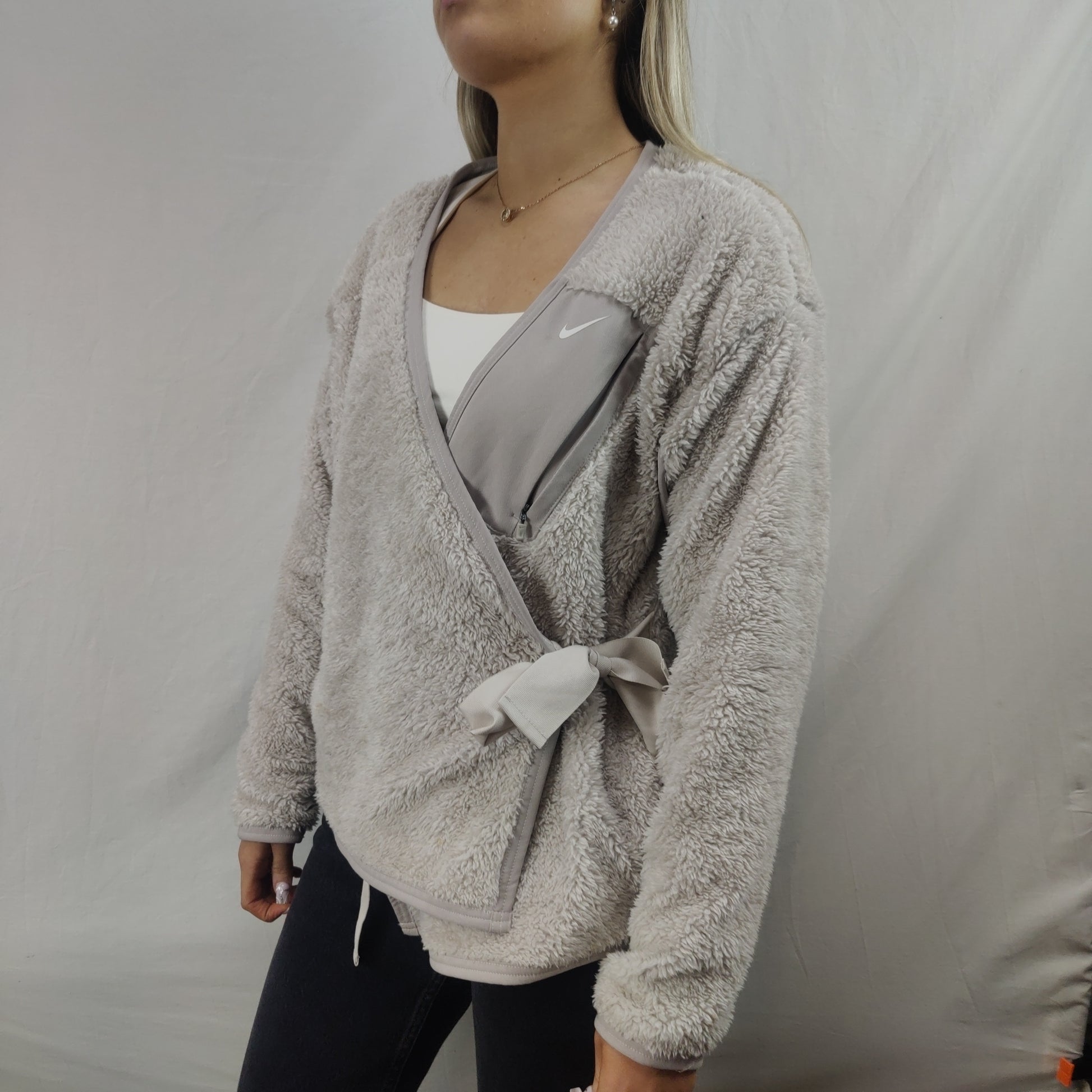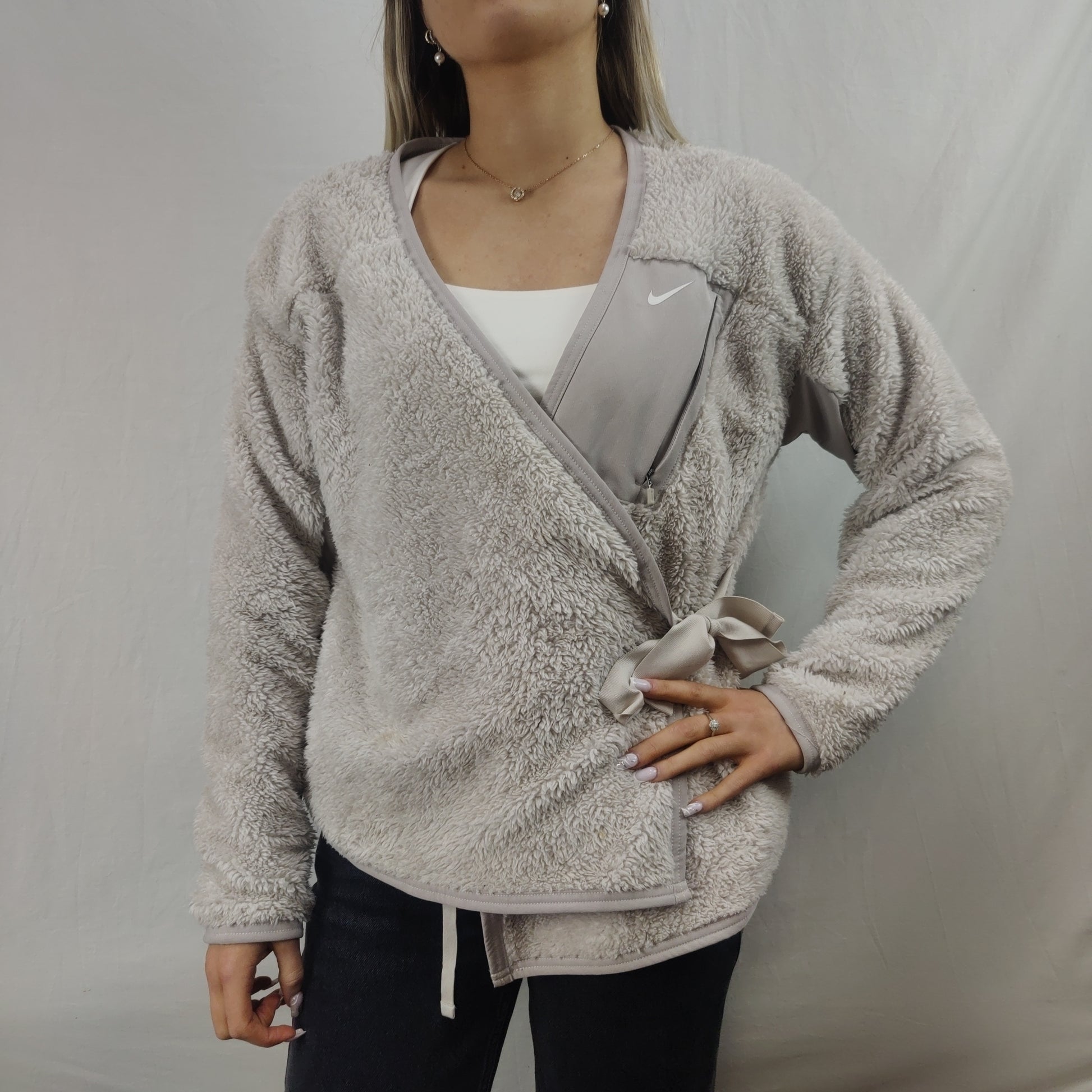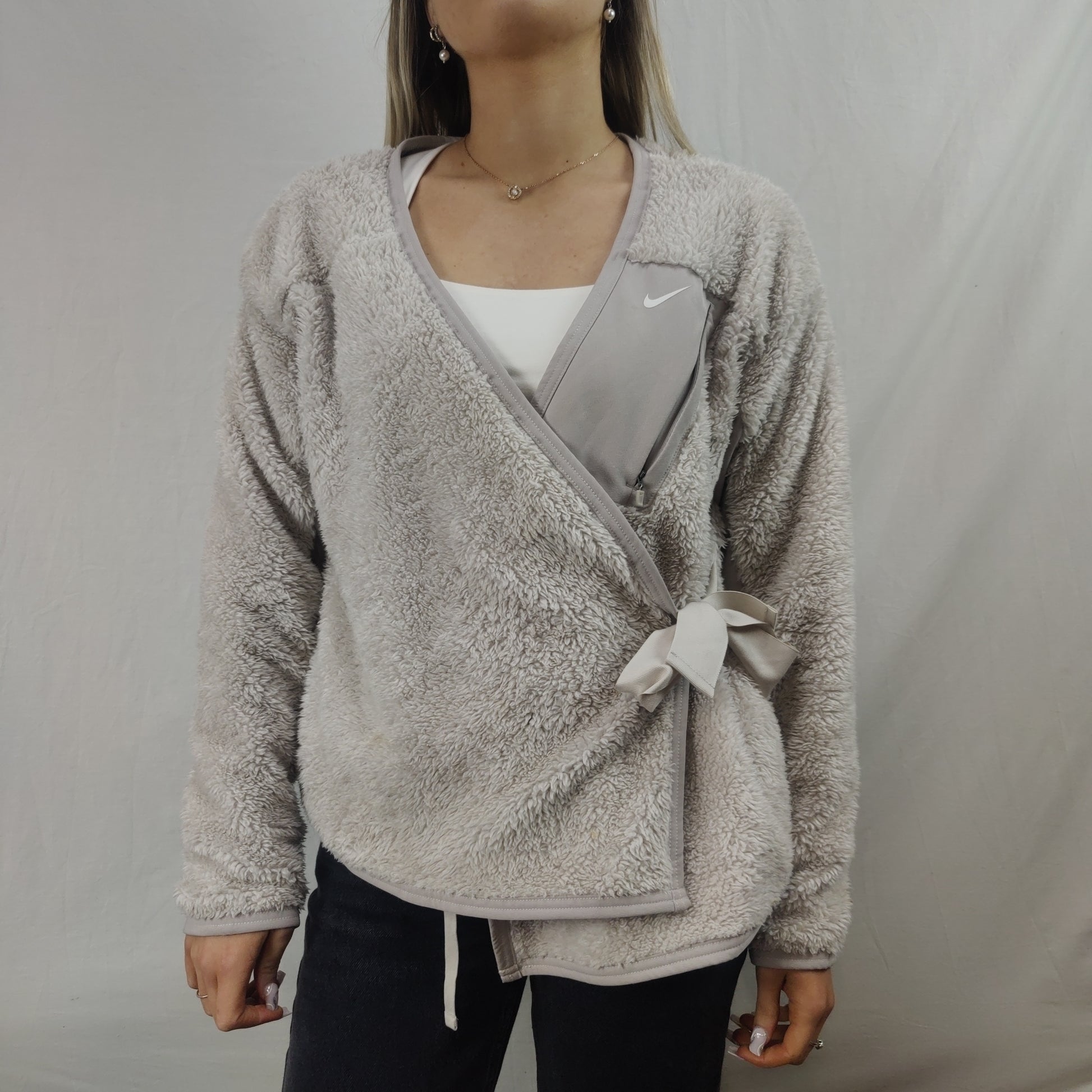 Nike Grey Sherpa Fleece Wrap Sweatshirt Cardigan Women Size XS