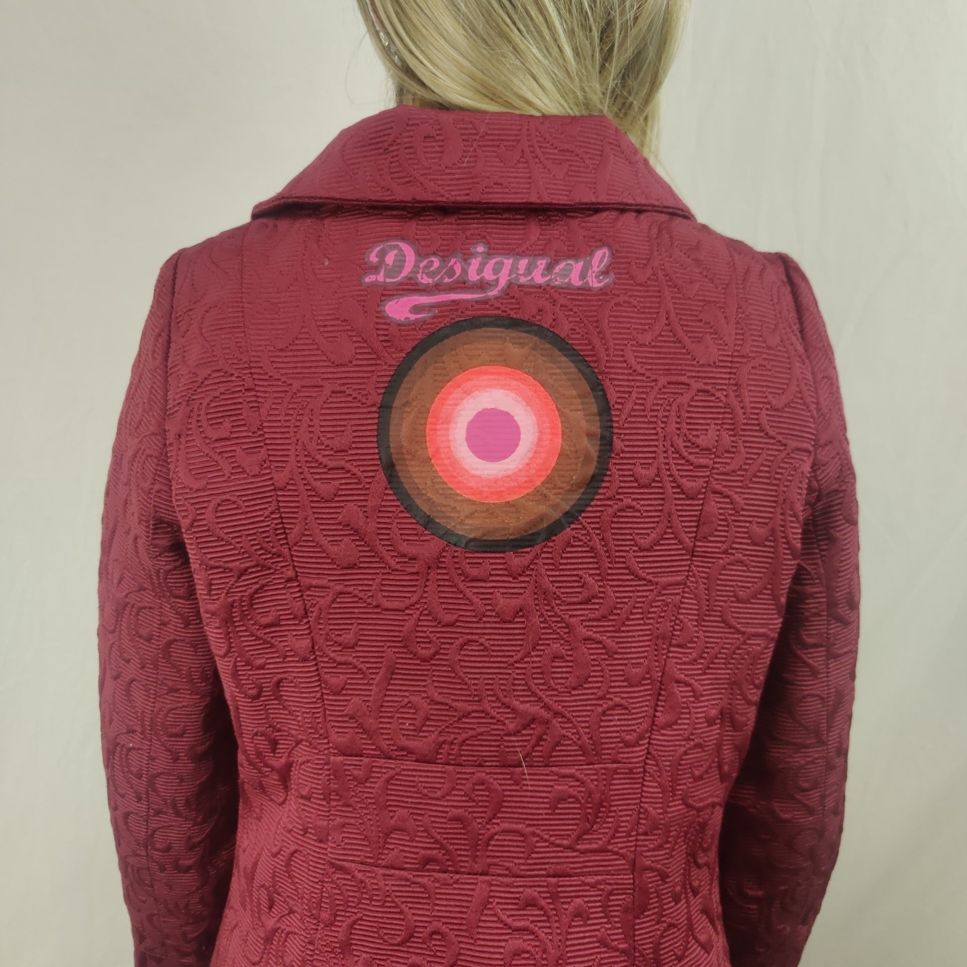 Desigual Red Overcoat Pea Coat Jacket Women Size Small