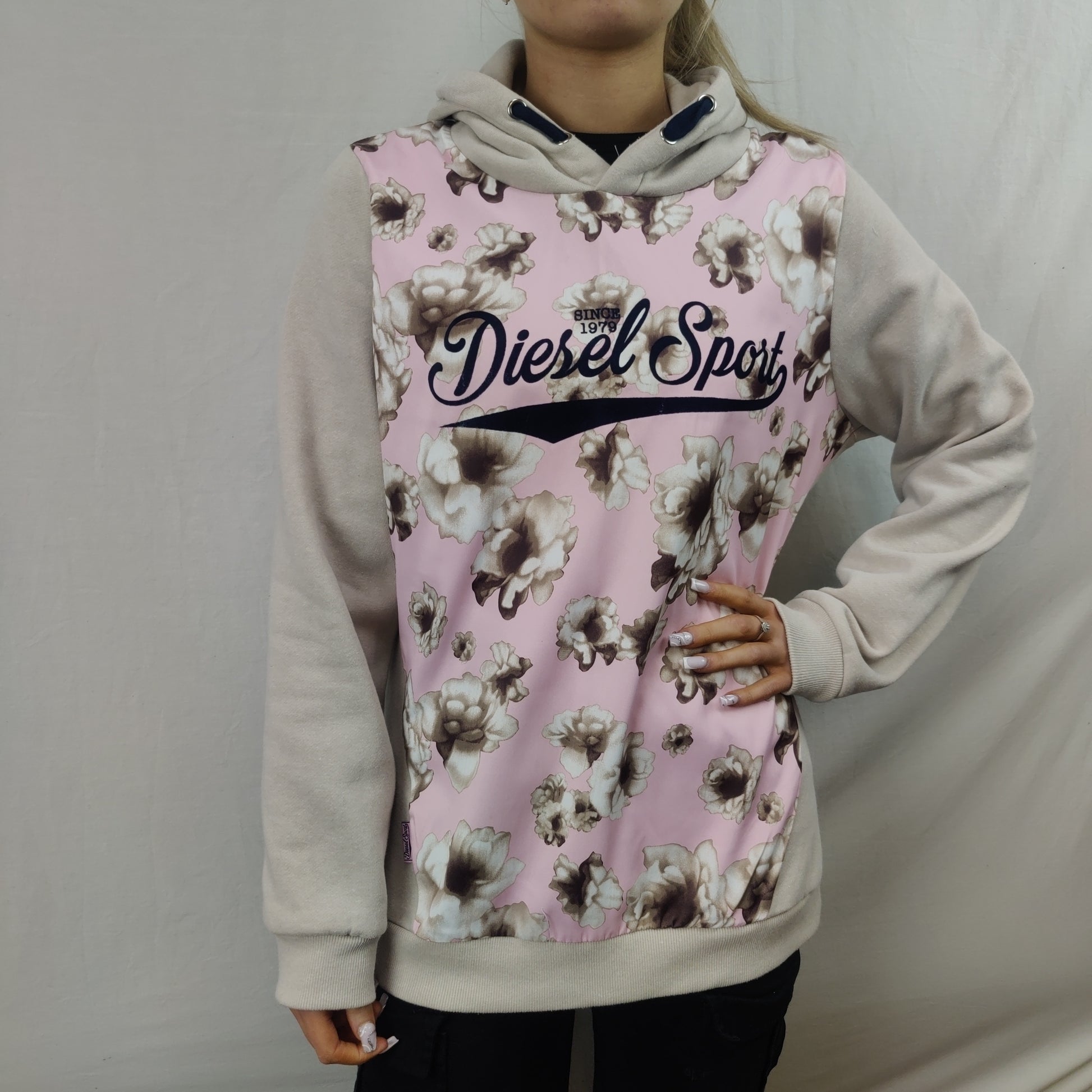 Diesel Spirit Vintage Pink/Grey Floral Pullover Hoodie Women Size Large