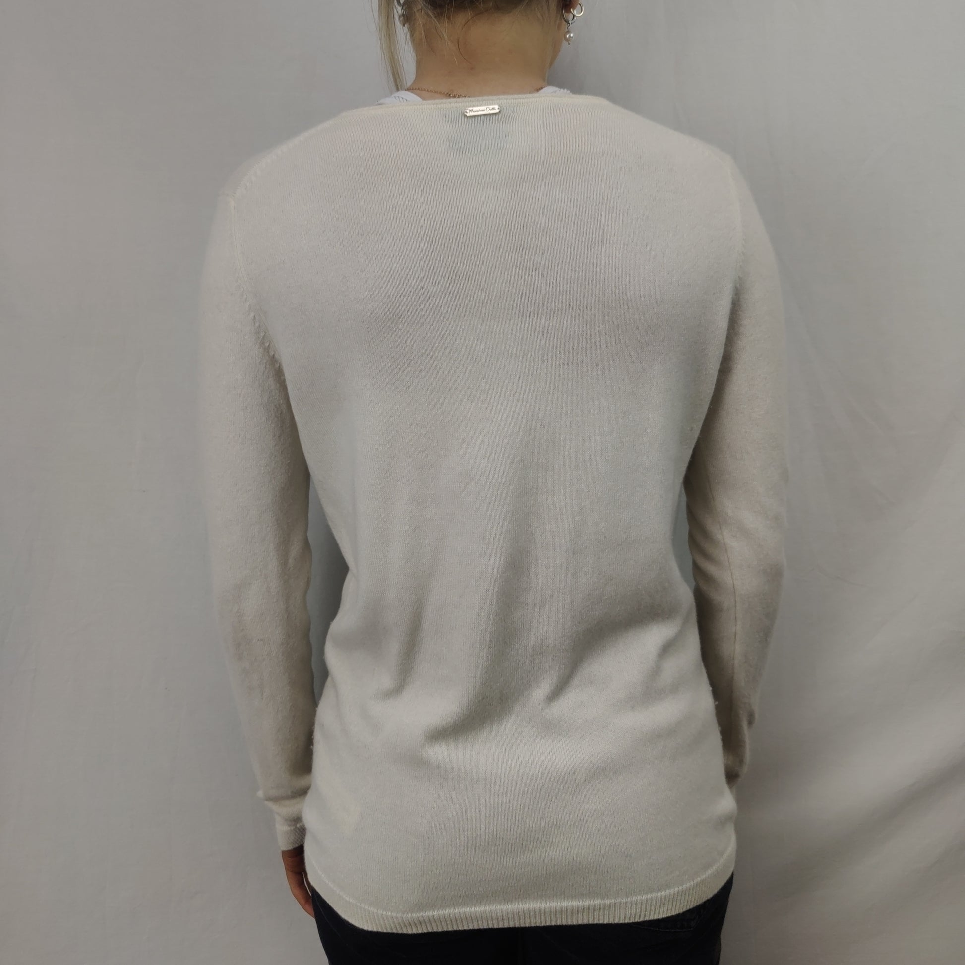 Massimo Dutti White 100% Cashmere V-Neck Jumper Sweater Women Medium