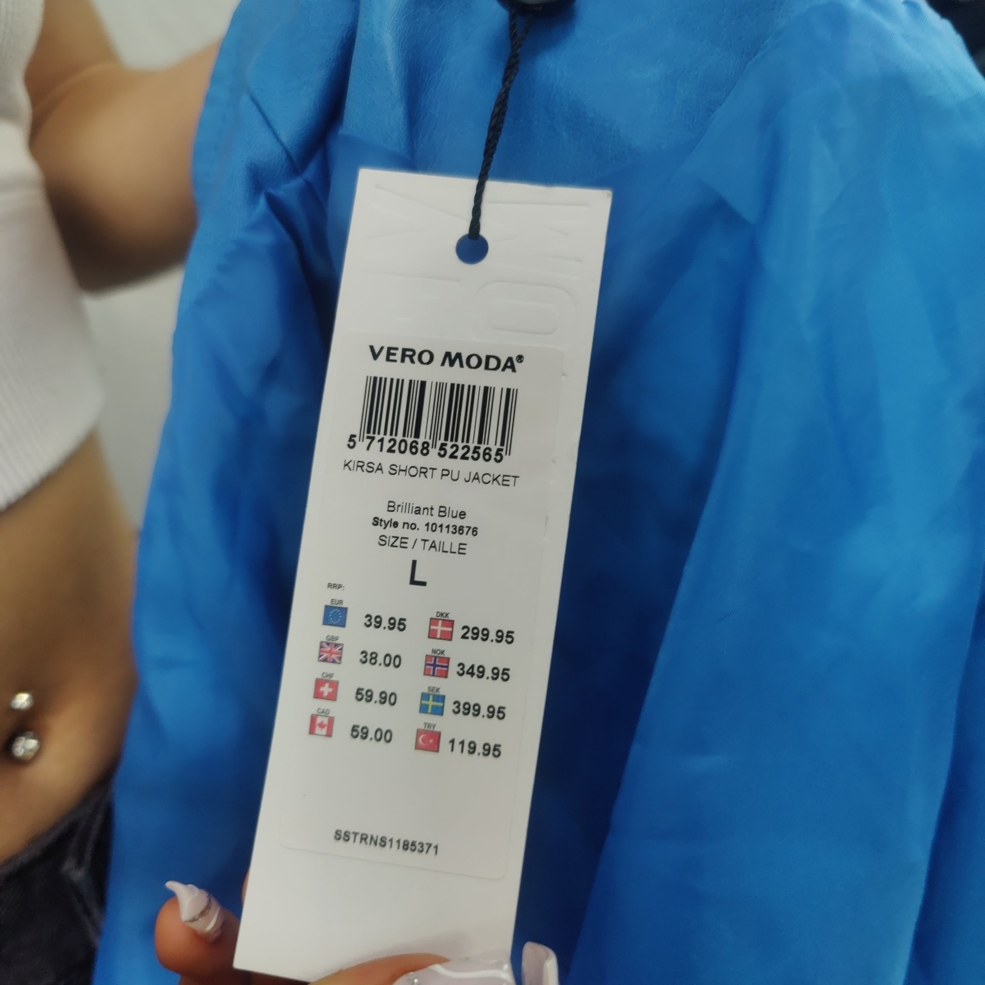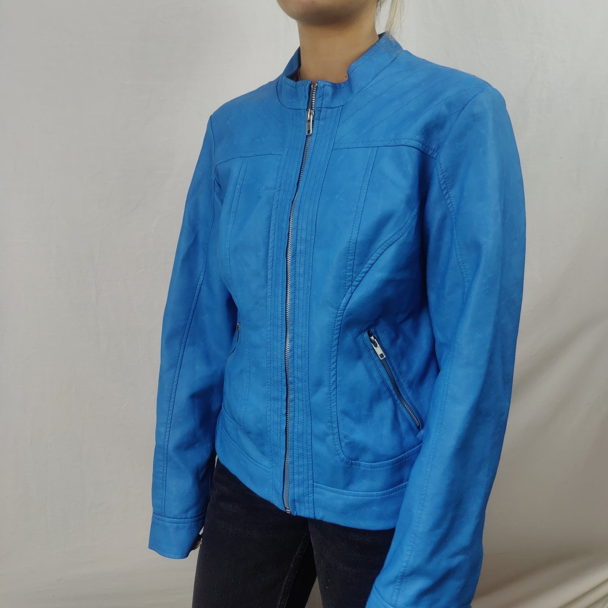 Vero Moda Blue Motorcycle Biker Faux Leather Jacket Women Size Large NWT