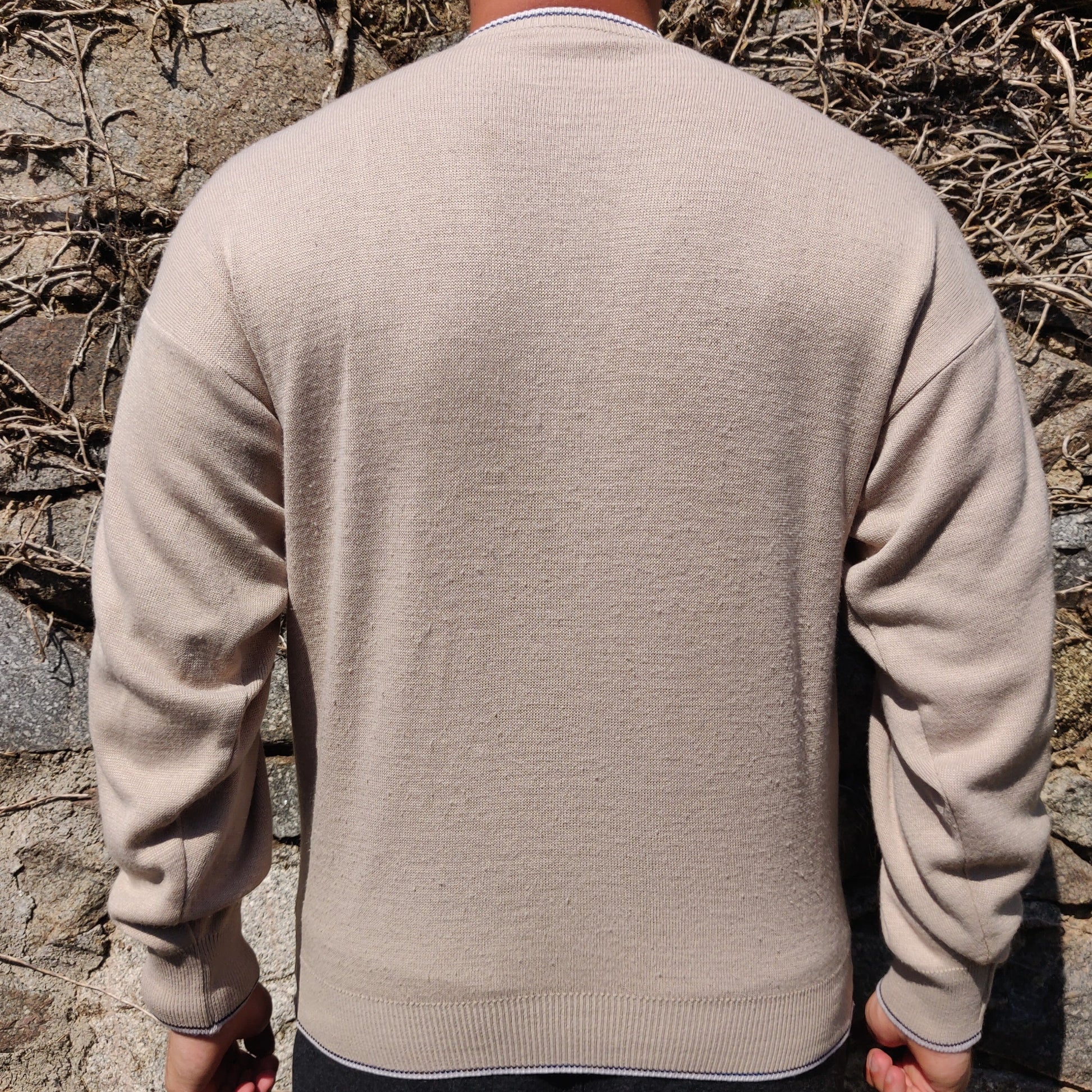 Gabicci Vintage Italy Beige V Neck Knitted Wool Blend Jumper Sweater Men Size Large