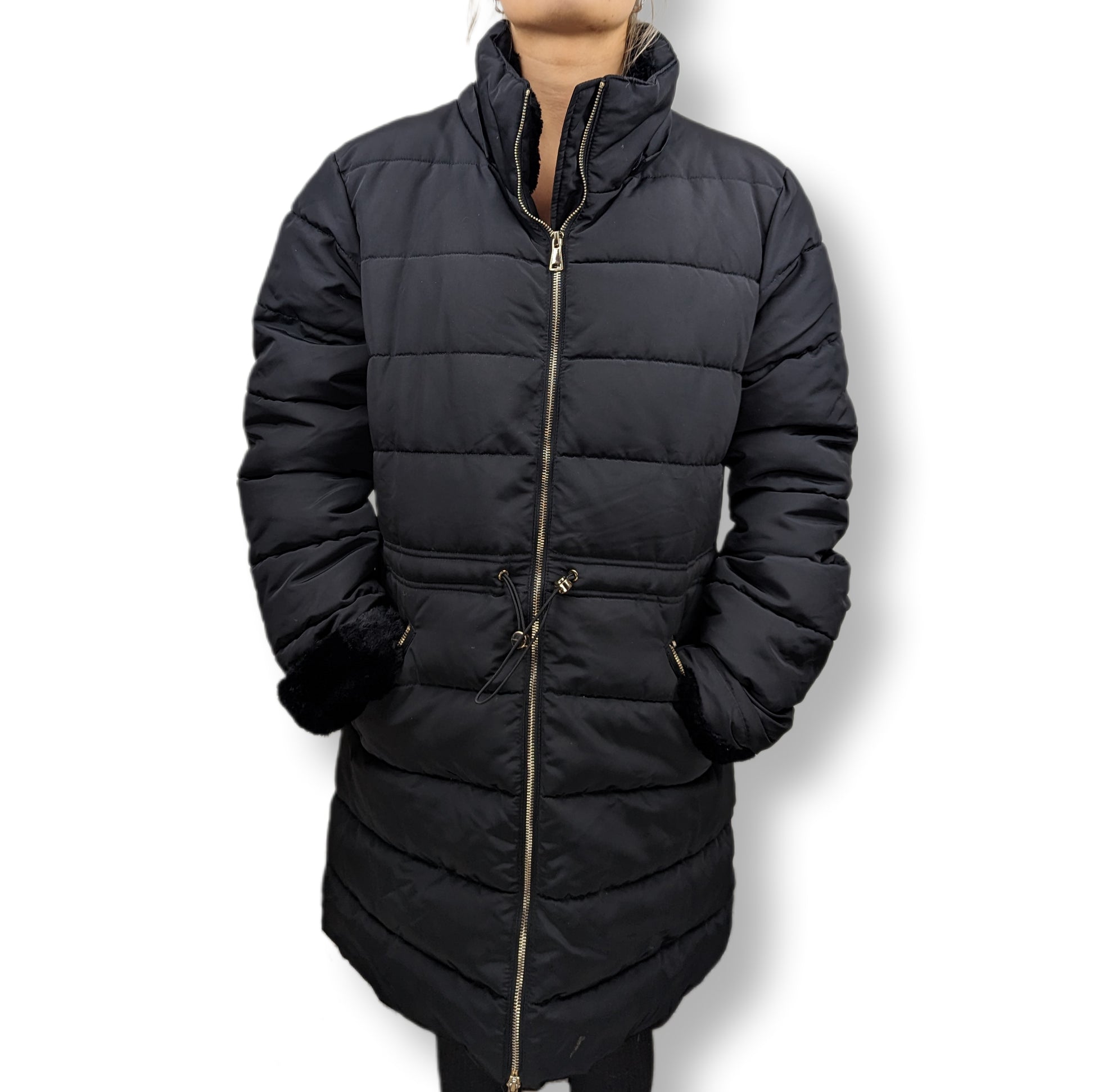 Golddigga Black Puffer Coat Women Size UK 16