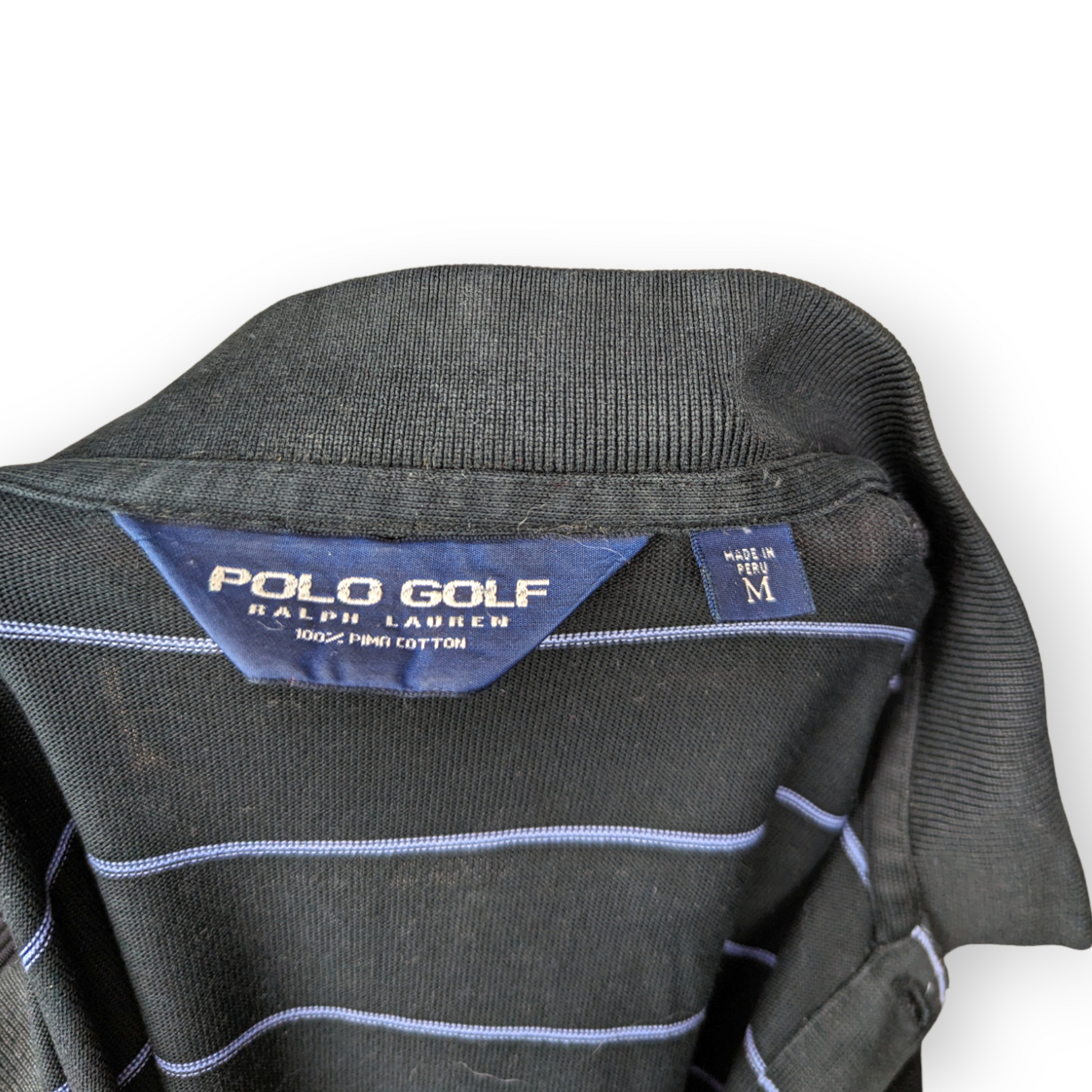 Ralph Lauren Polo Golf Vintage Black Long Sleeved Striped Polo Shirt Men Medium