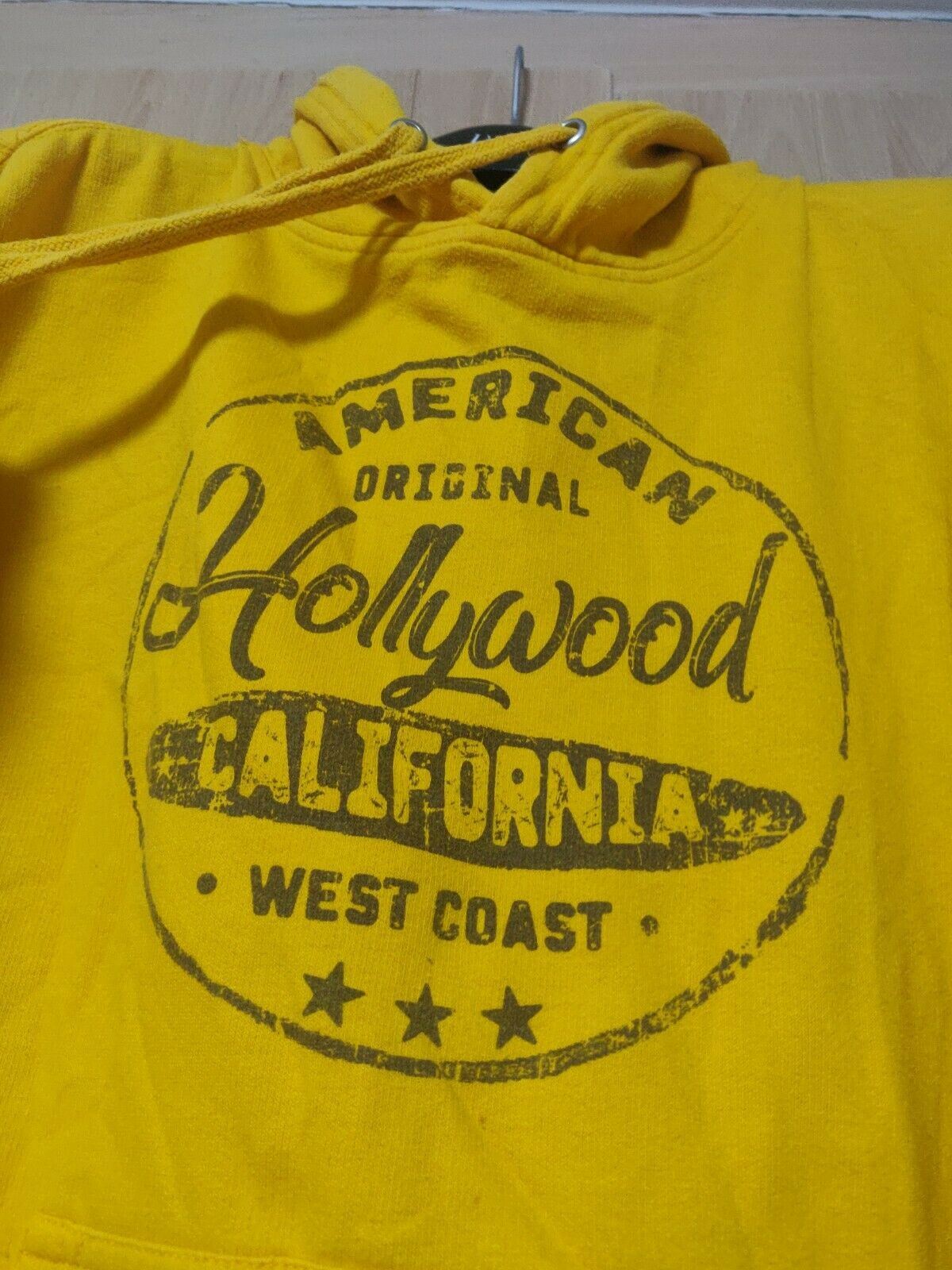 Hollywood California Yellow Pullover Hoodie Men Size Small.