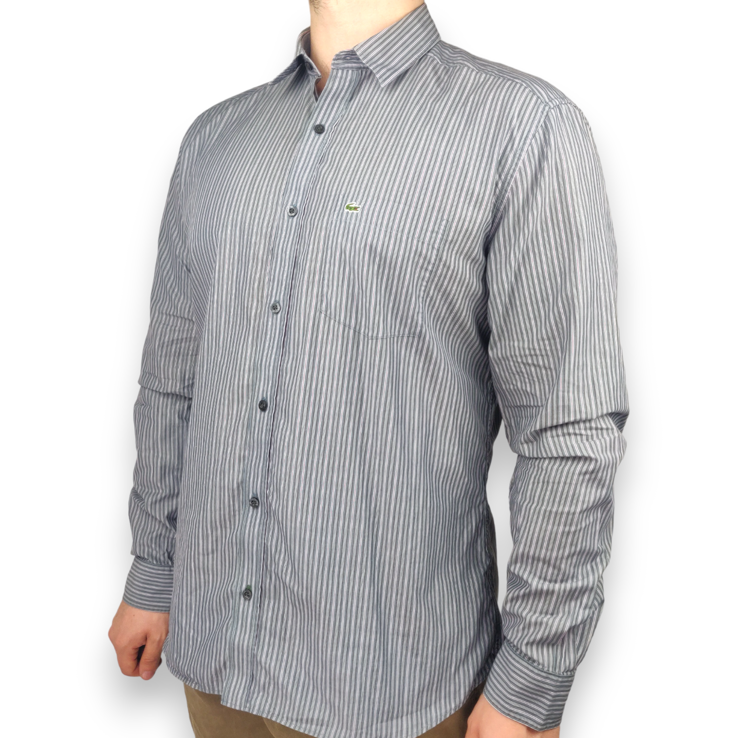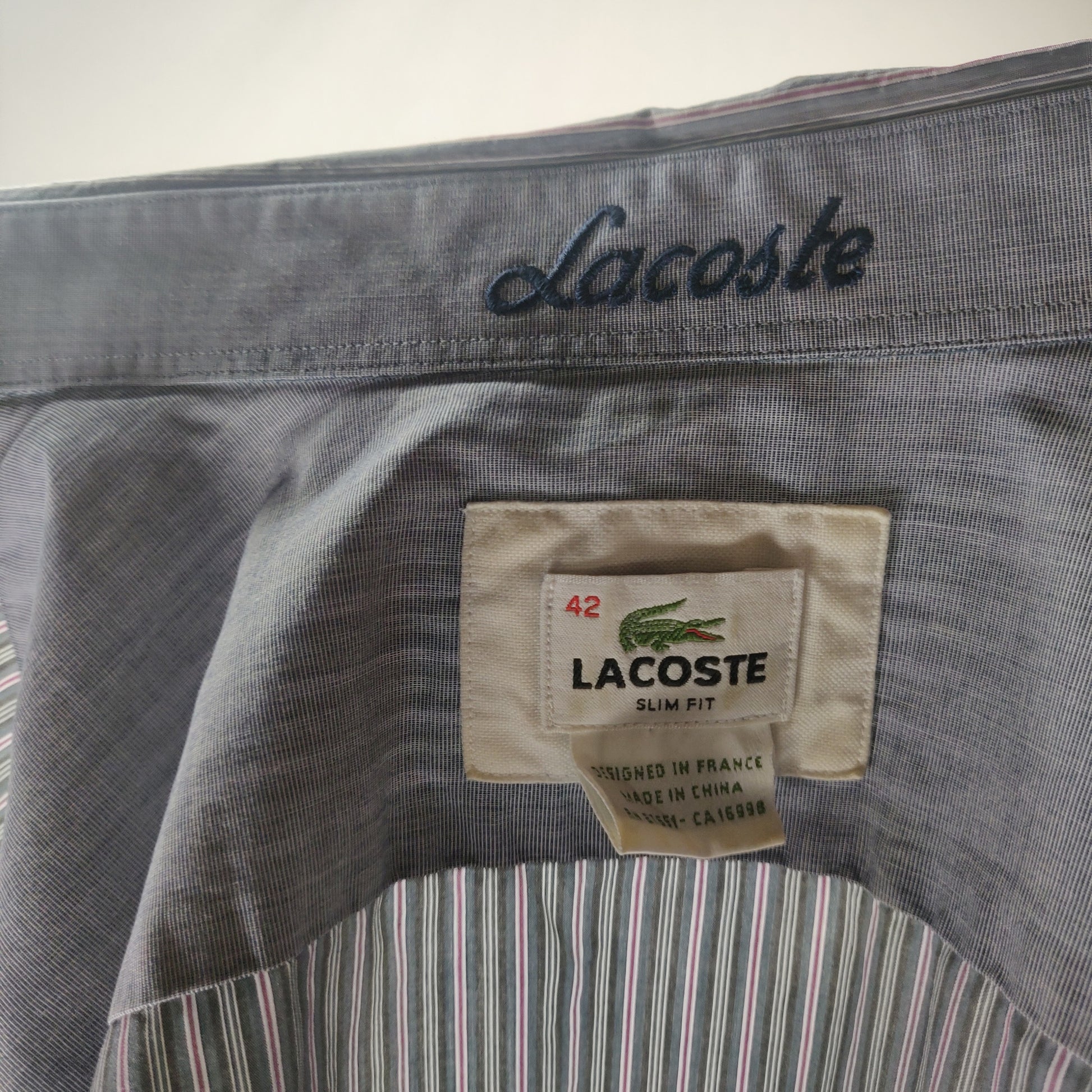 Lacoste Blue Long Sleeve Cotton Striped Shirt Men Size Large