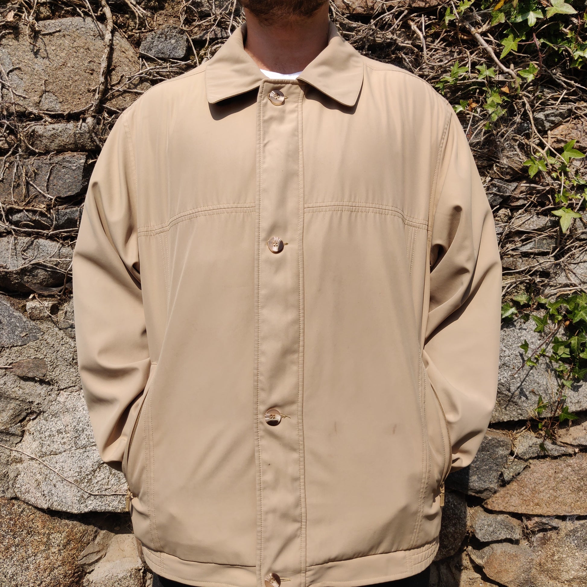 Lapidus Exclusive Sports Vintage Beige Harrington Bomber Jacket Men Size XL