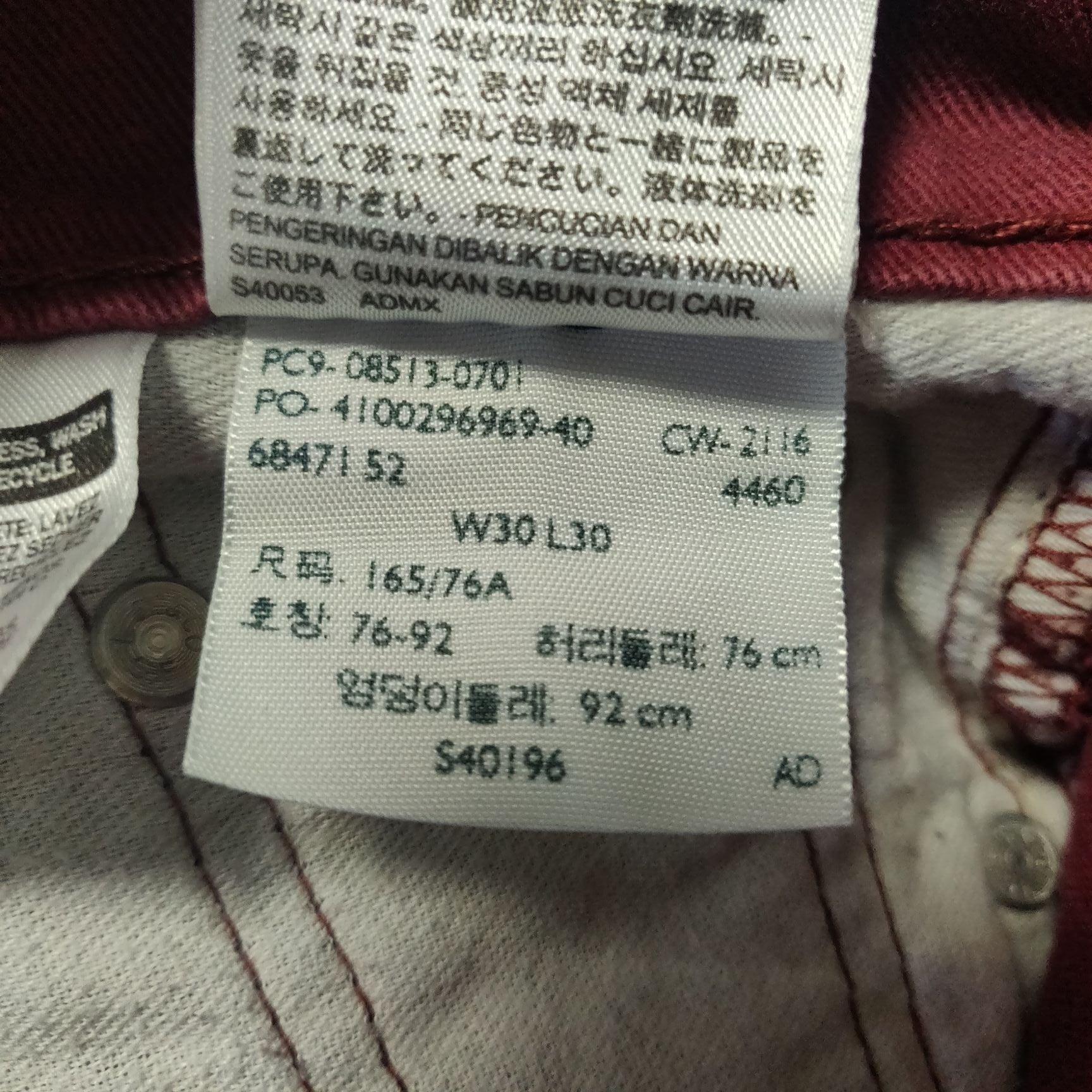 Levi Strauss 513 Red Jeans Men Size W30/L30