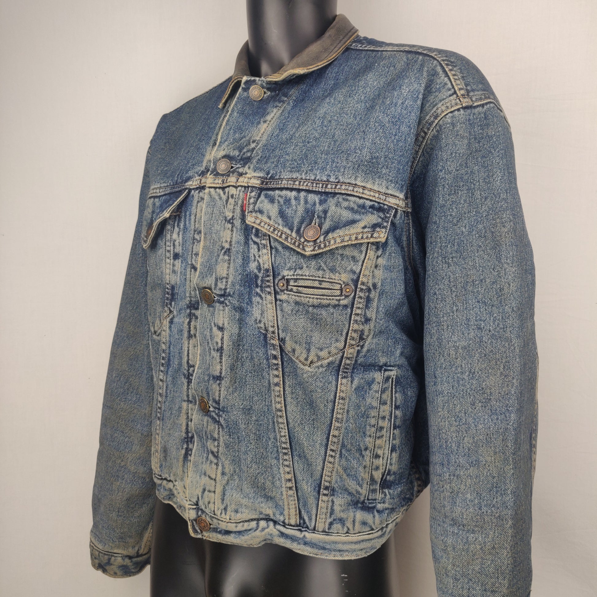 Levi Strauss & Co Vintage 1985 Blue Cropped Denim Jacket Men Size Large