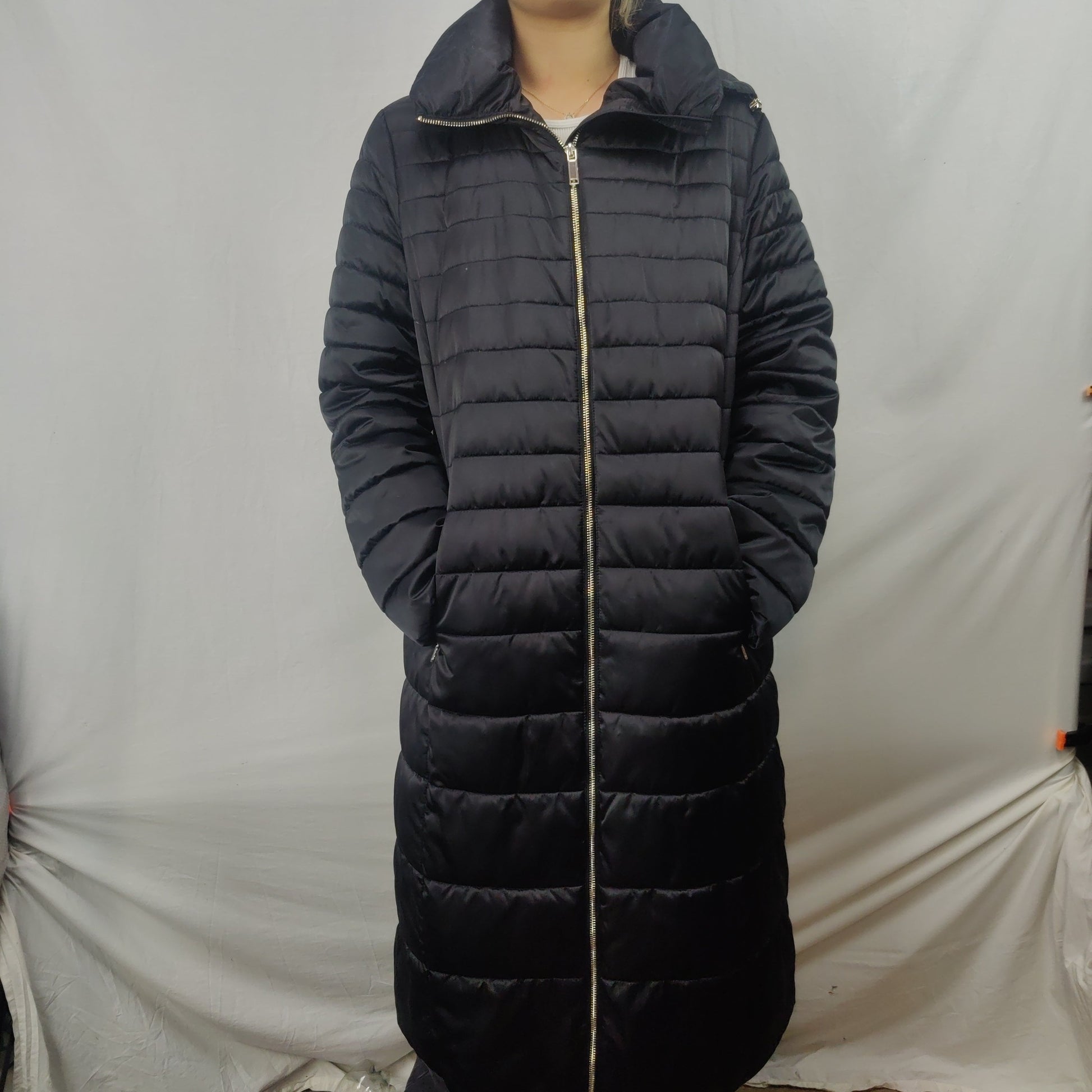 Massimo Dutti Black Long Puffer Jacket Overcoat Coat Women XL