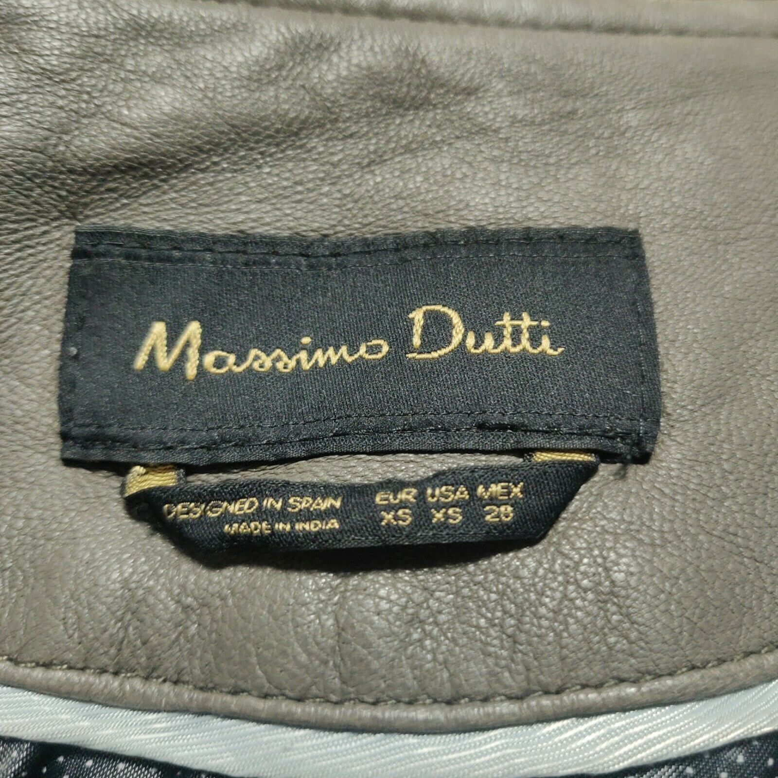 Massimo Dutti Grey Leather Jacket Women Size XS