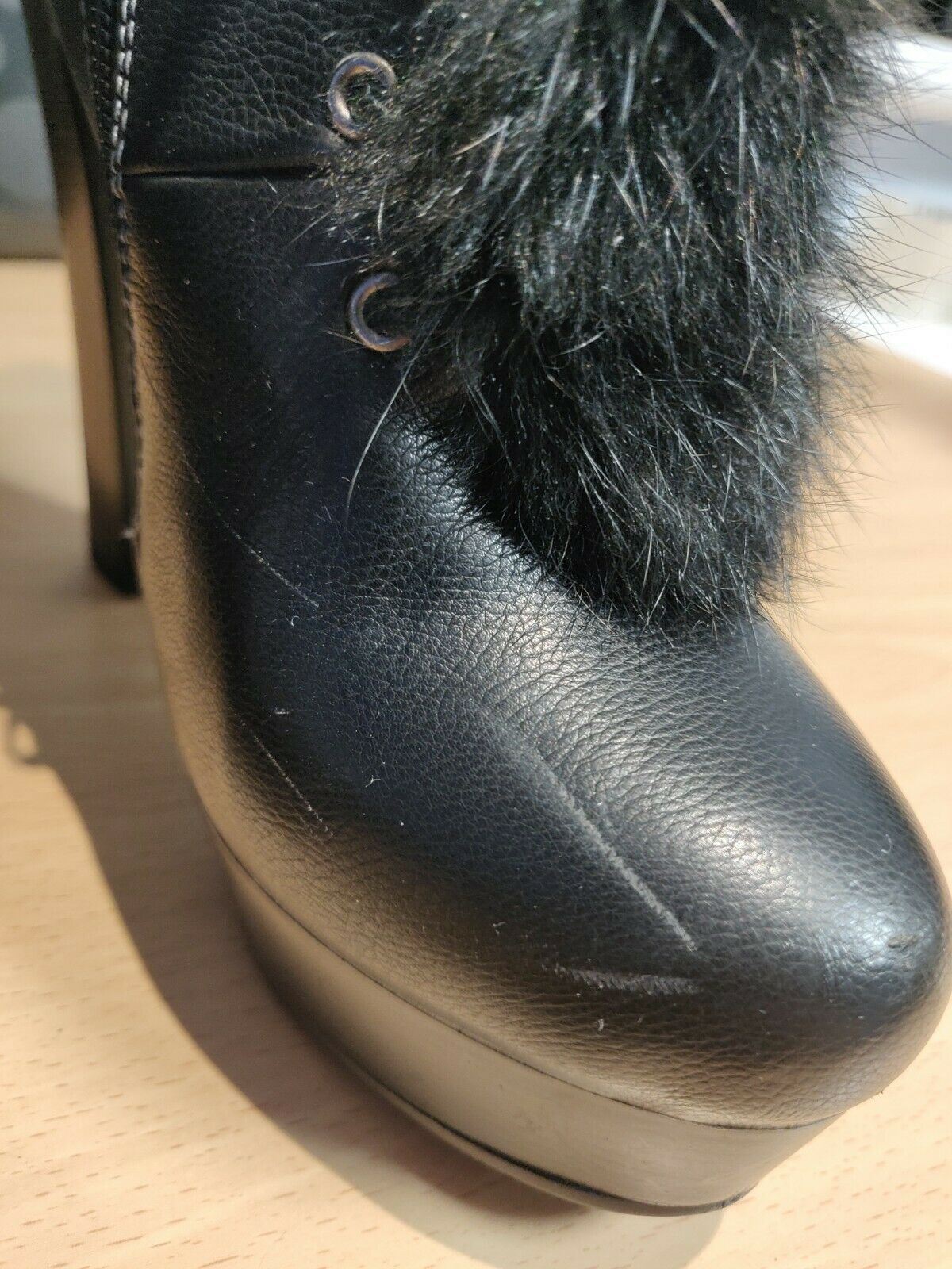 MekoMelo Black Zip Leather Boots Heel Ankle Black Fury Women Size UK 4