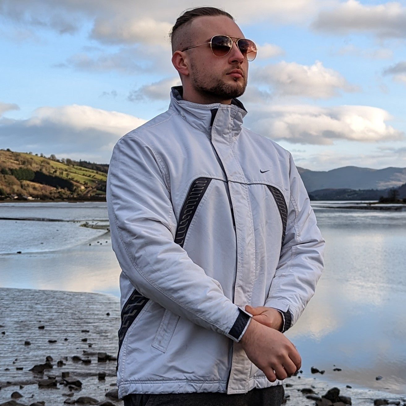 Nike White Vintage Full Zip Windbreaker Jacket Men Size Small