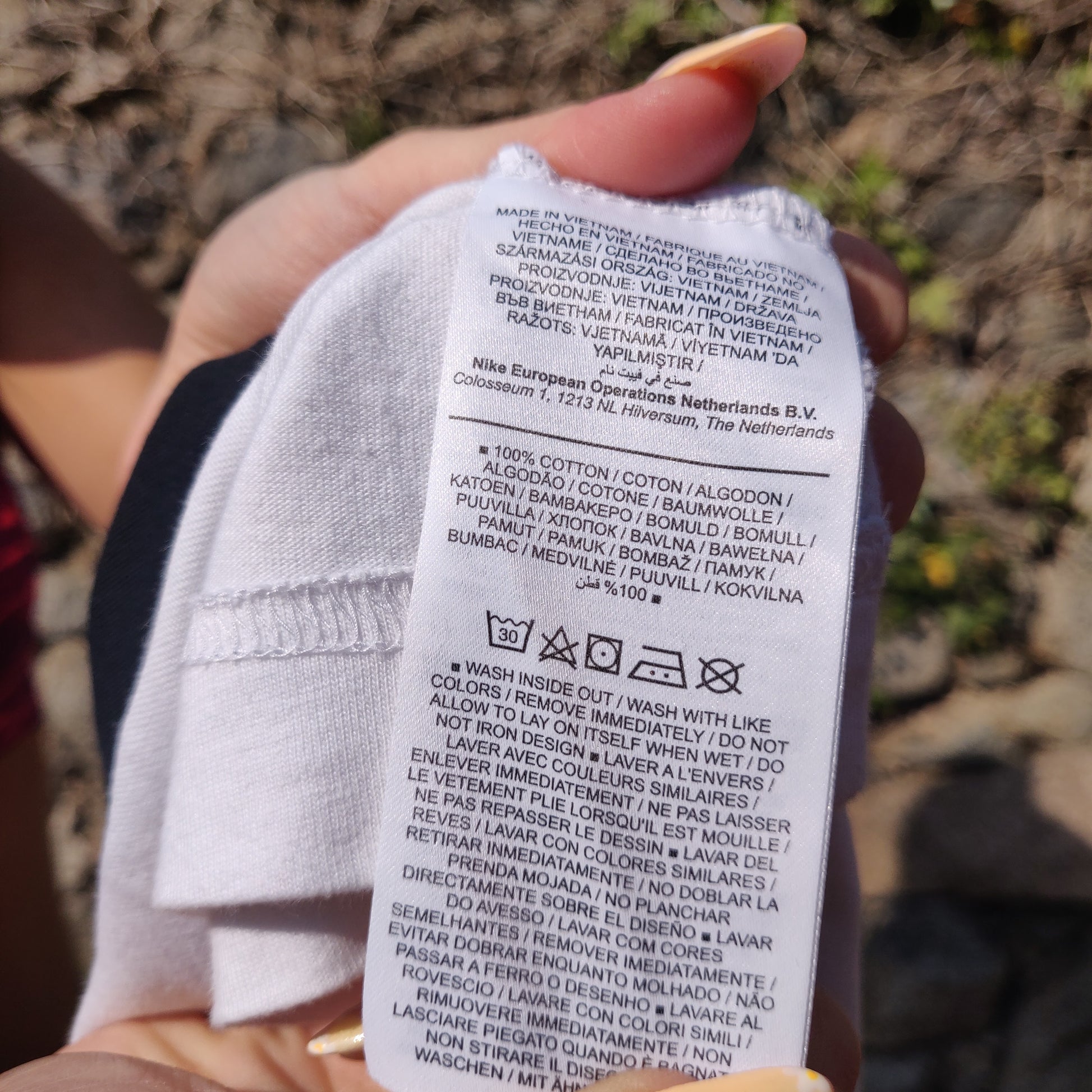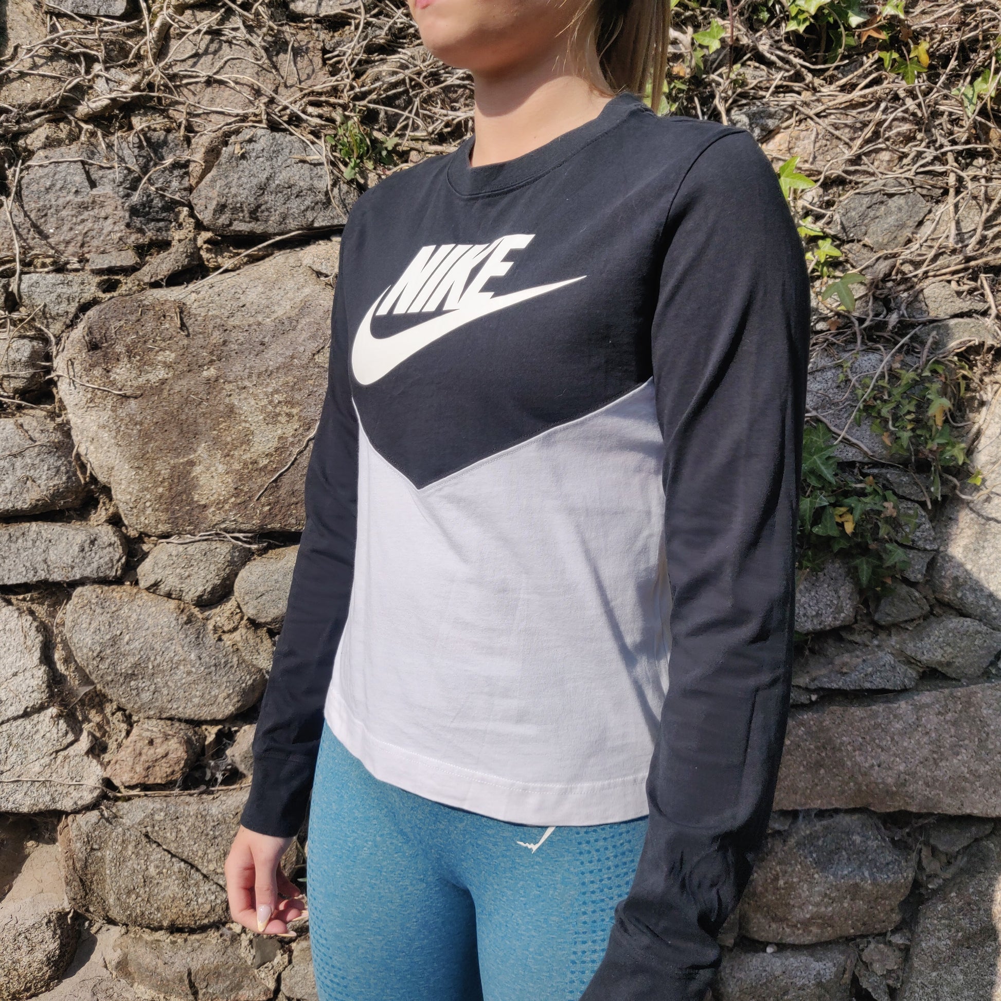 Nike White Black Long Sleeve Big Logo Crew Neck Cotton T-shirt Women Size XS