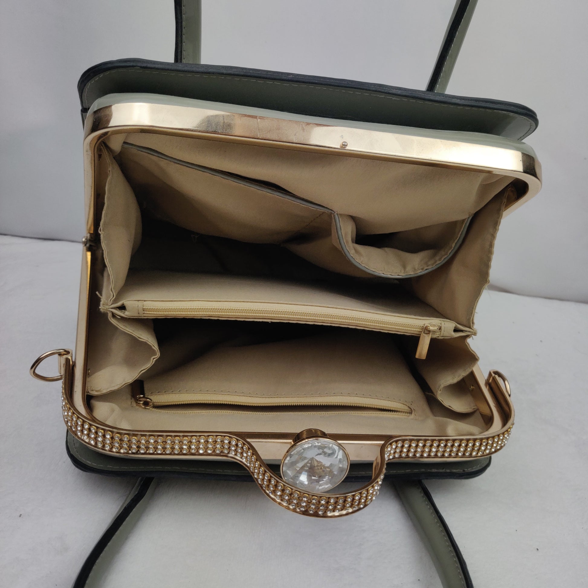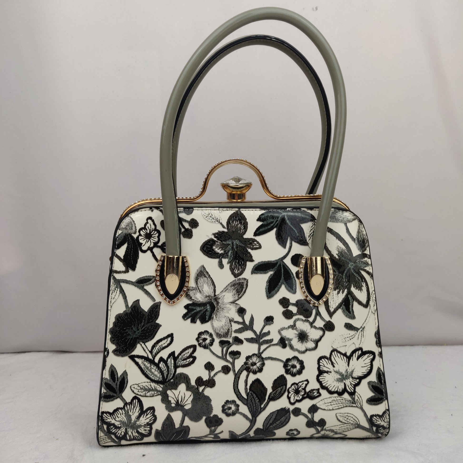 White Black Green Floral Flower Leather Gold Jewel Handbag Shoulder Bag Women