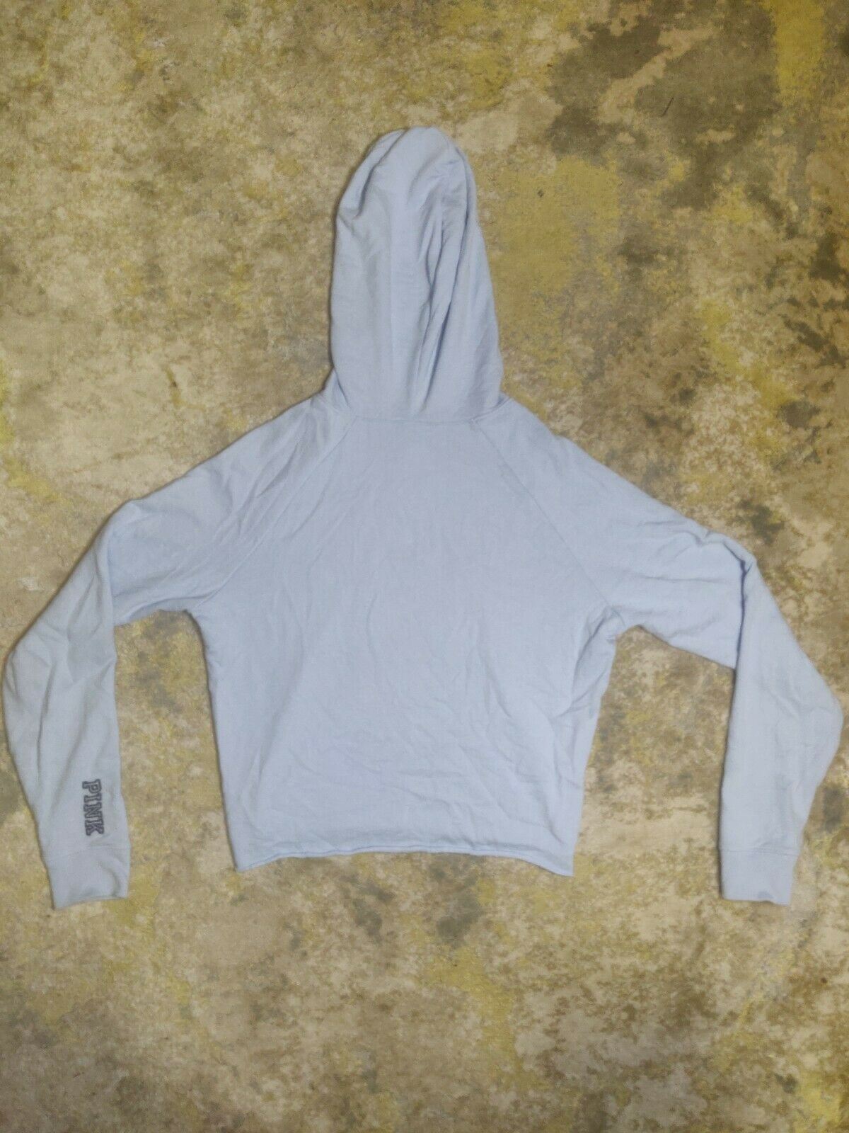Pink Victoria Secret London Blue Cropped Hooded Sweatshirt Long Sleeve Women Size XS