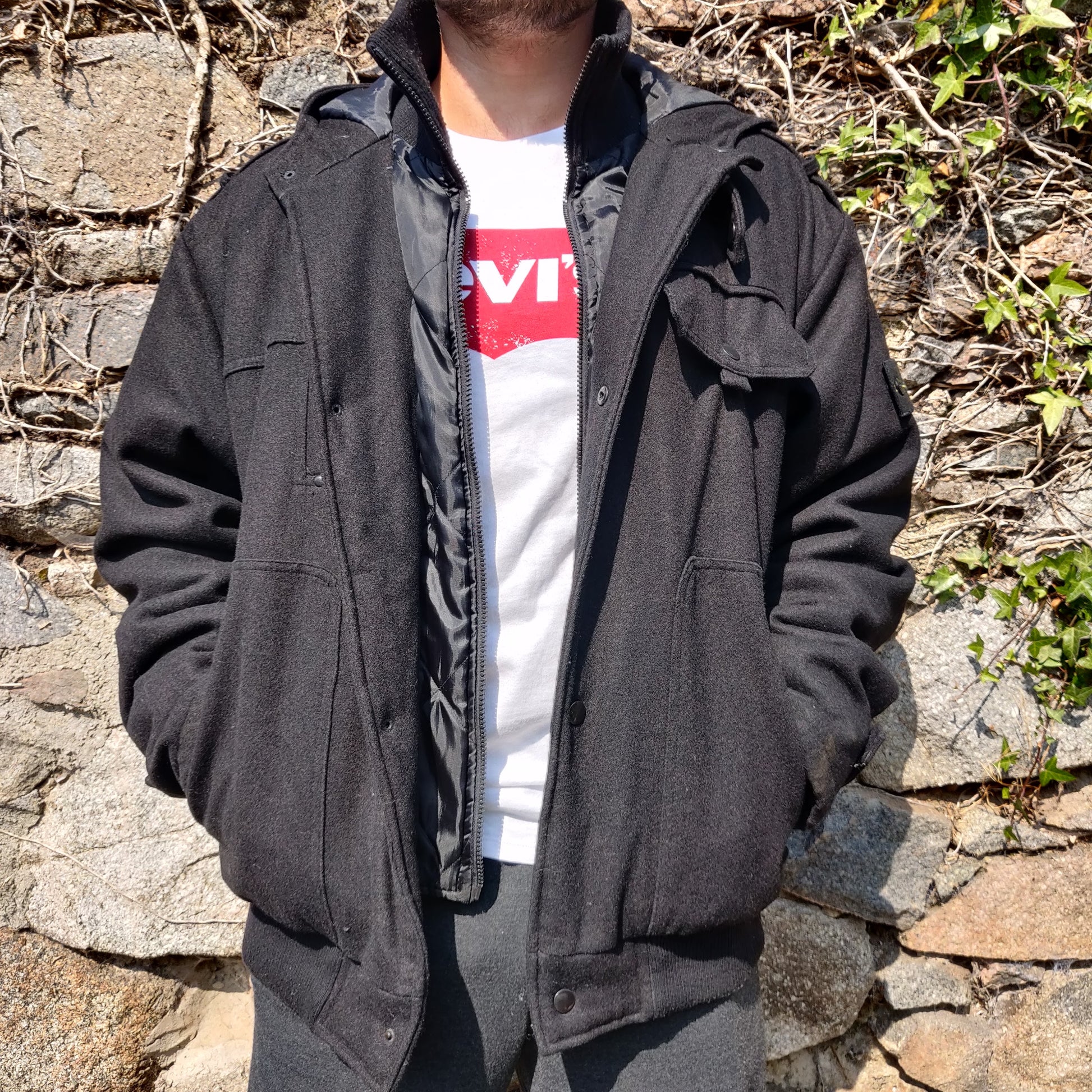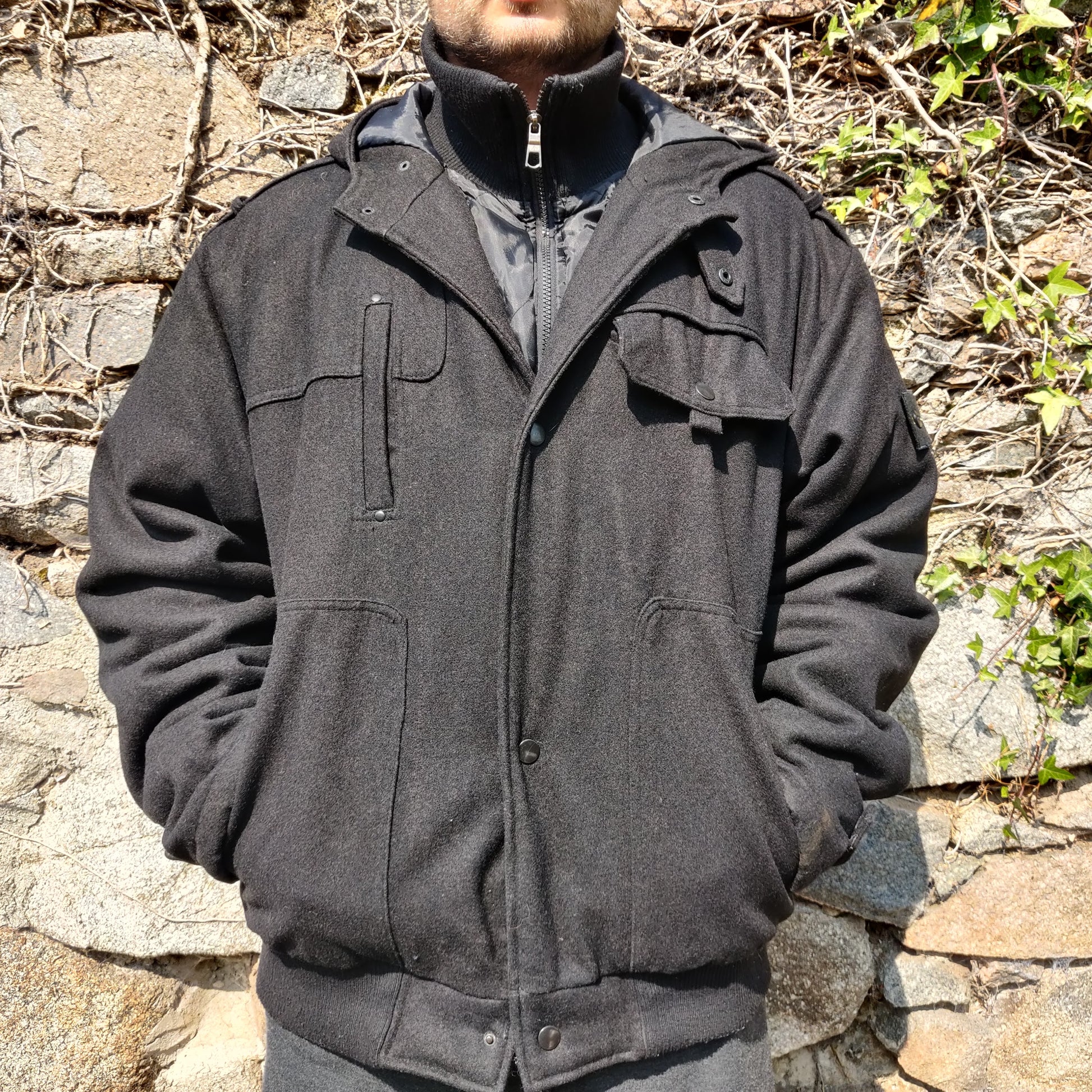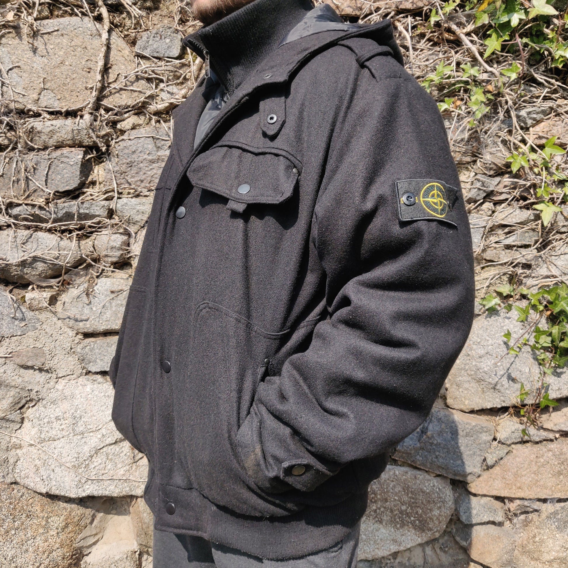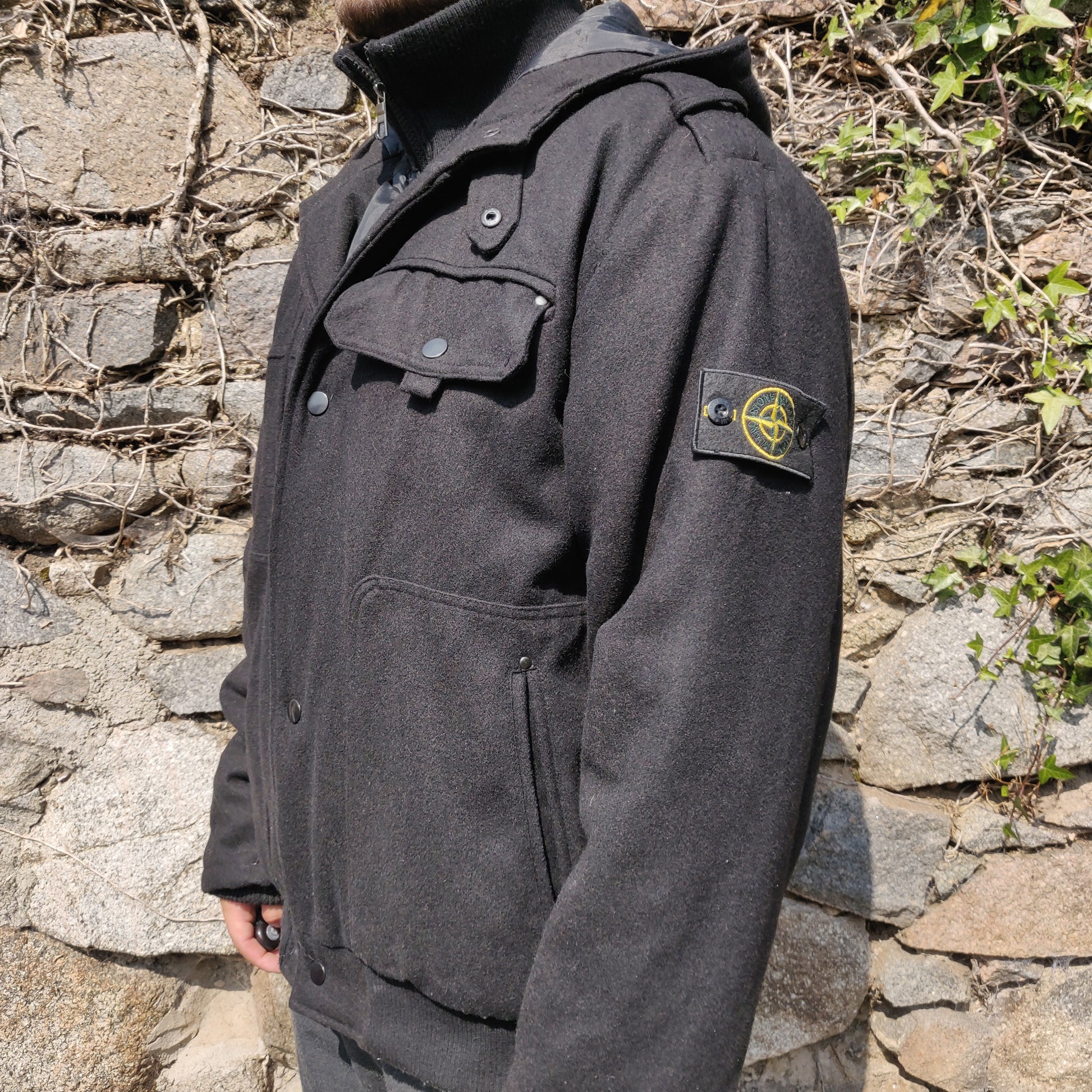 Stone Island Vintage Black Dual Layer Wool Utility Jacket Coat Men Size XXL ~ 533093