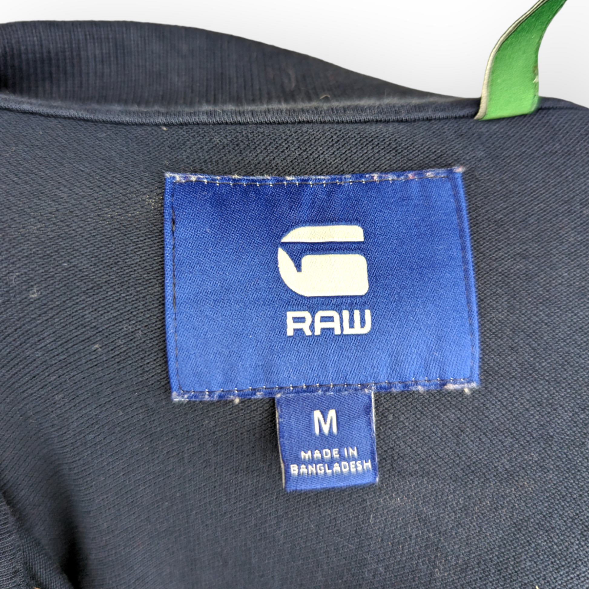 G-Star Raw Navy Blue Long Sleeve Cotton Polo Shirt Men Size Medium