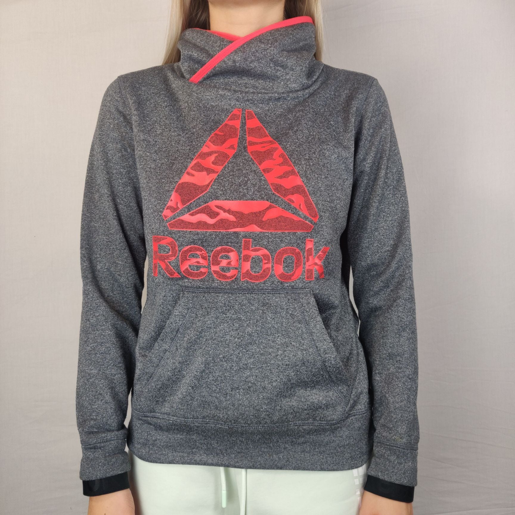 Reebok Grey Sweatshirt Pullover Red Logo Women SIze XS