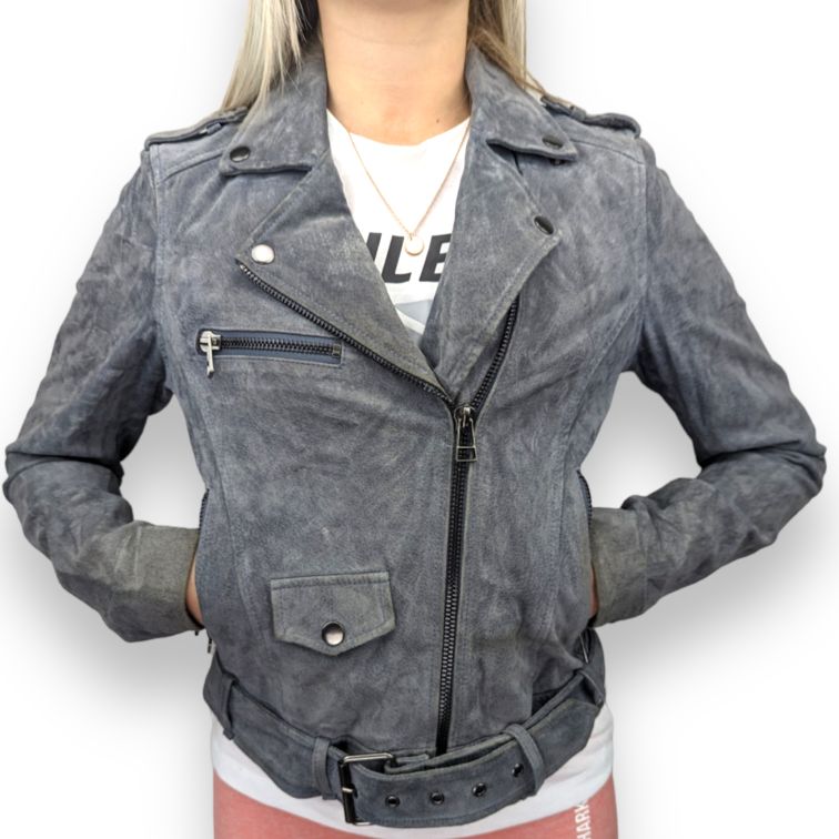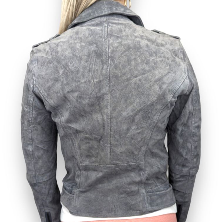Review Vintage Grey Biker Suede Leather Jacket Women Size Small
