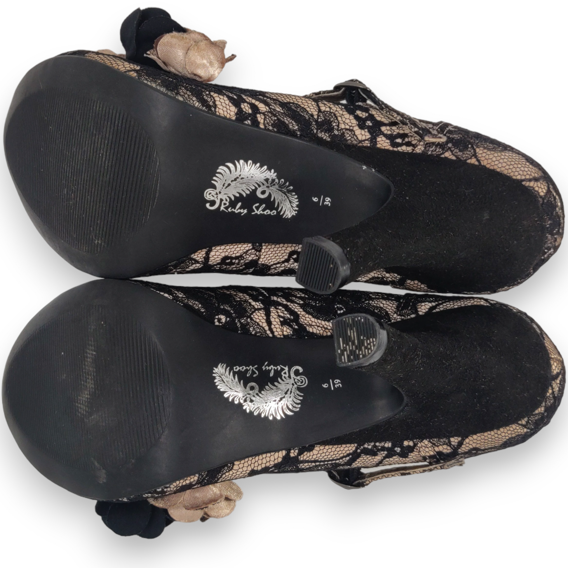 Ruby Shoo Black Lace Champagne Roses Court Heels Shoes Women Size UK 6 (EU 39)