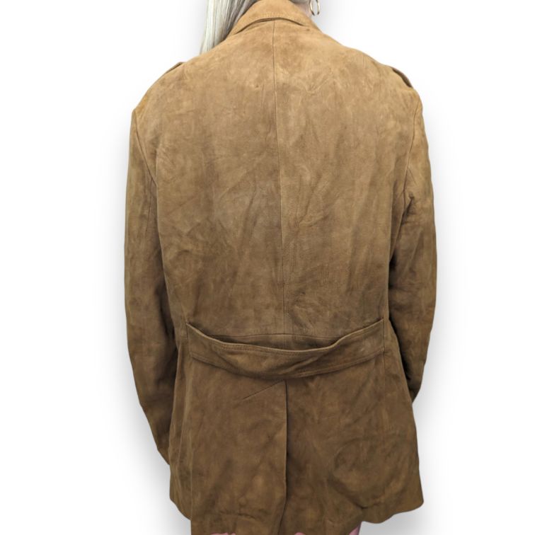 St Michael Brown Button Suede Leather Coat Jacket Women Size Large