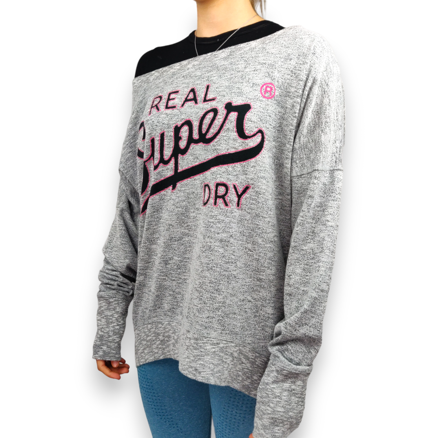 Superdry Sport Grey Off Shoulder Pullover Sweatshirt Women Size Medium