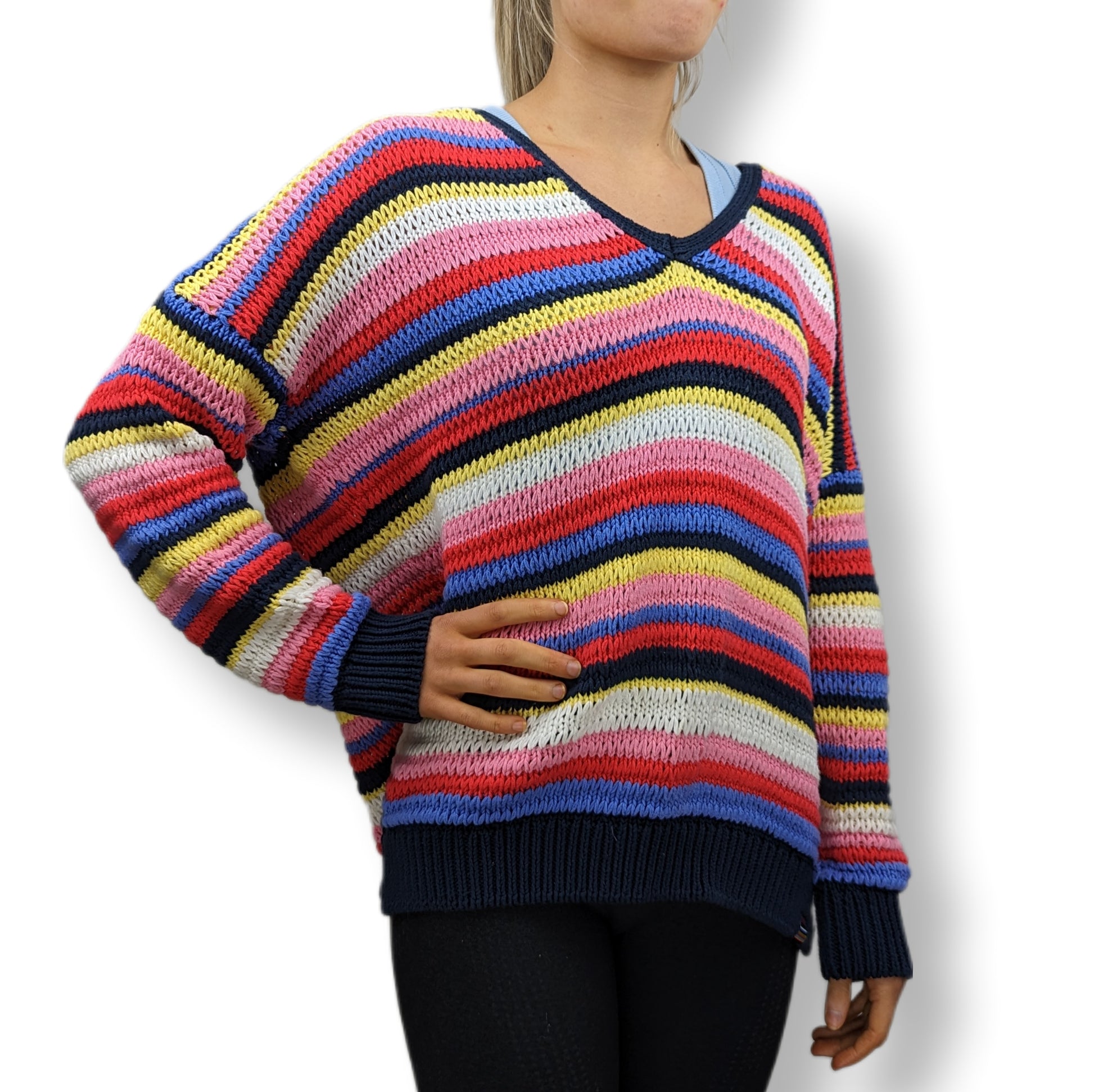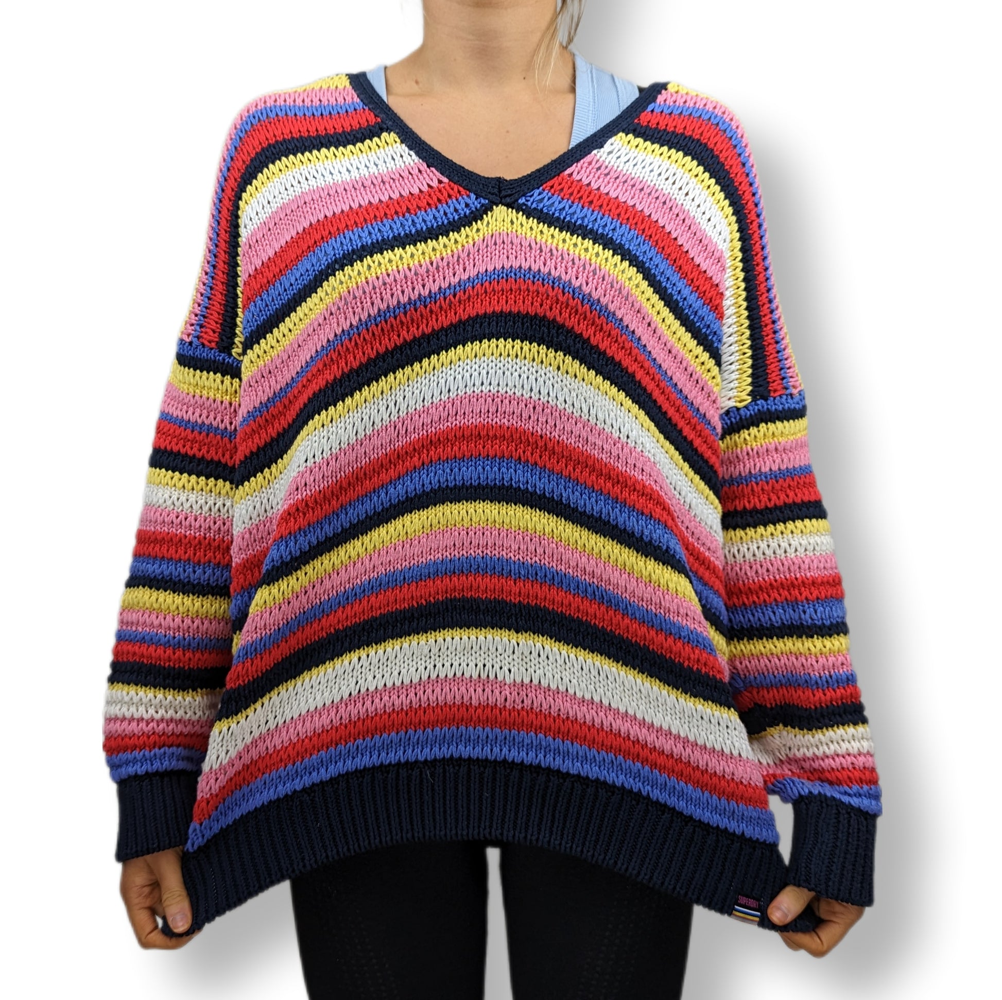 Superdry Multicolour Stripe Open Knit Sweater Women Size UK 12