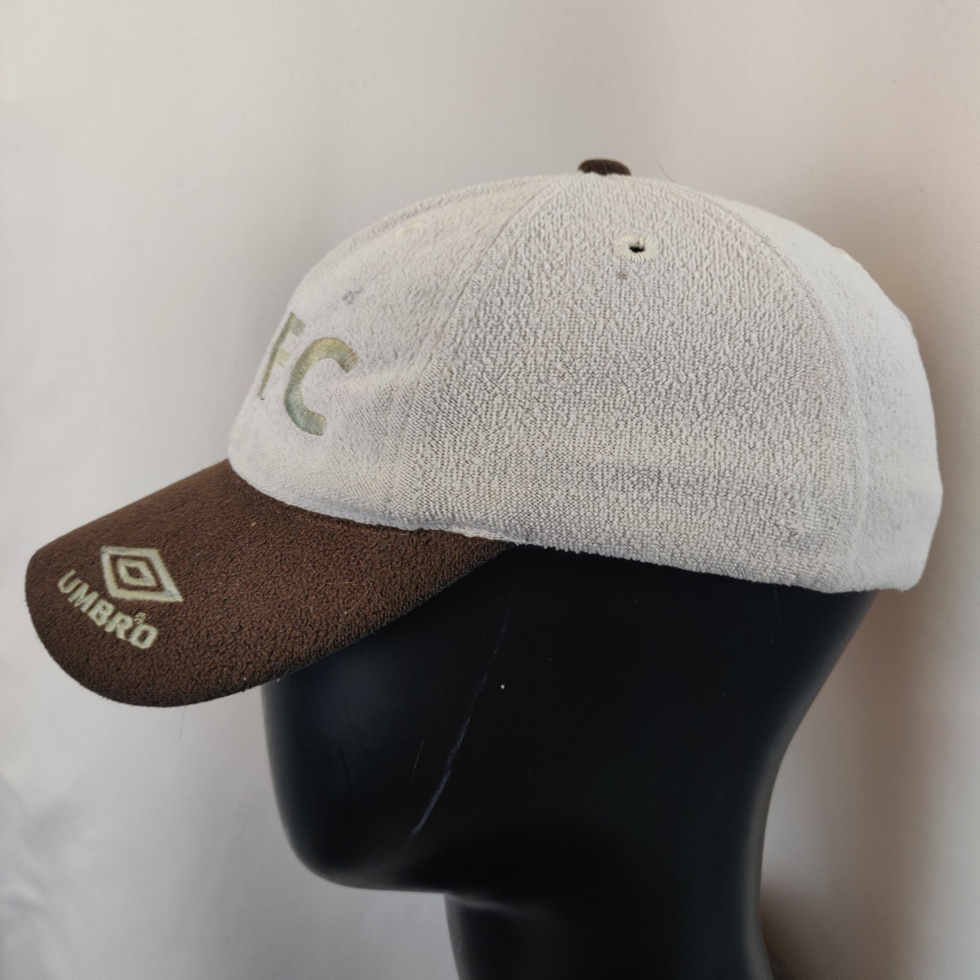 Umbro Manchester United Vintage White Brown Fleece Football Baseball Cap Hat Men