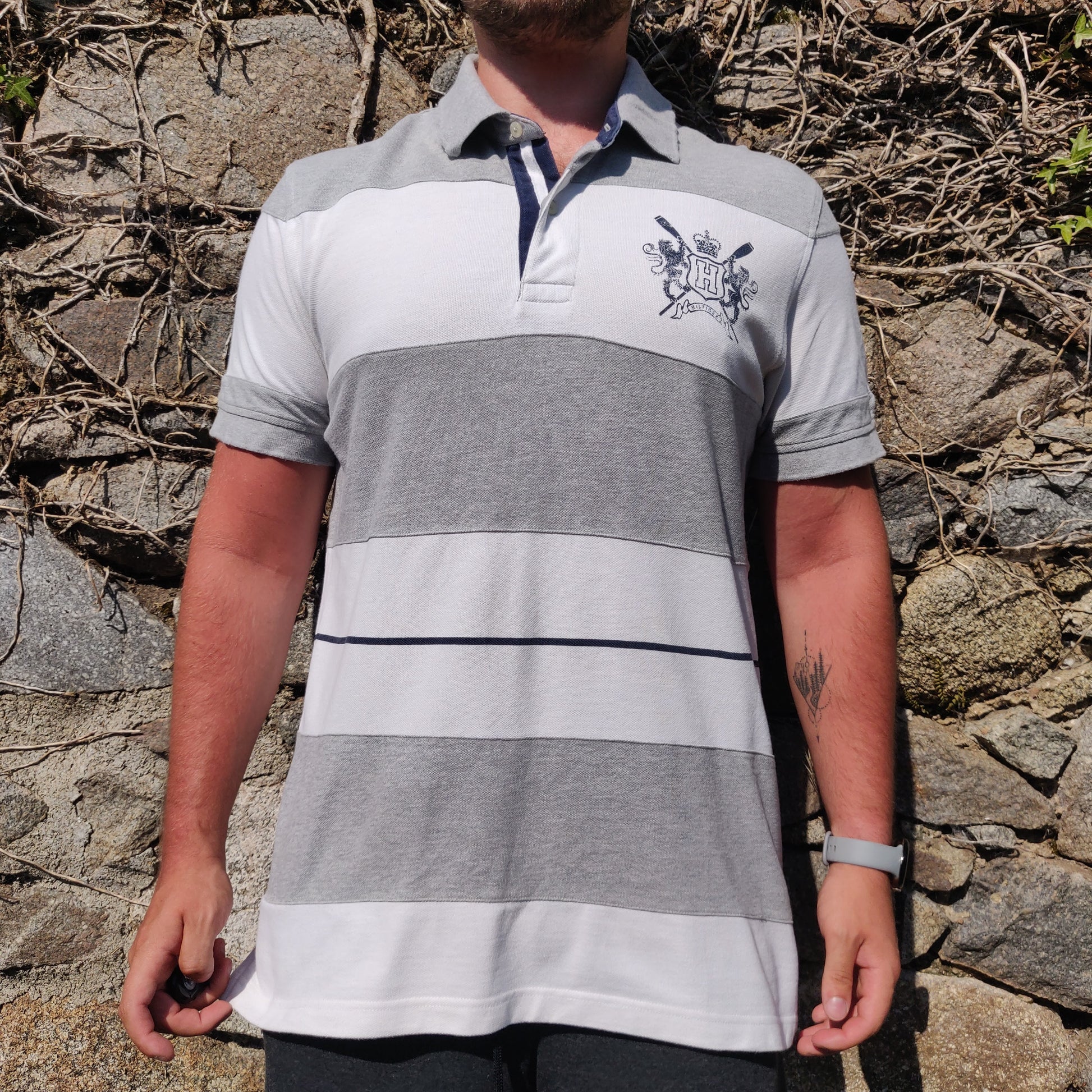 Tommy Hilfiger Custom Fit White Grey Striped Cotton Golf Polo Shirt Men Size Large