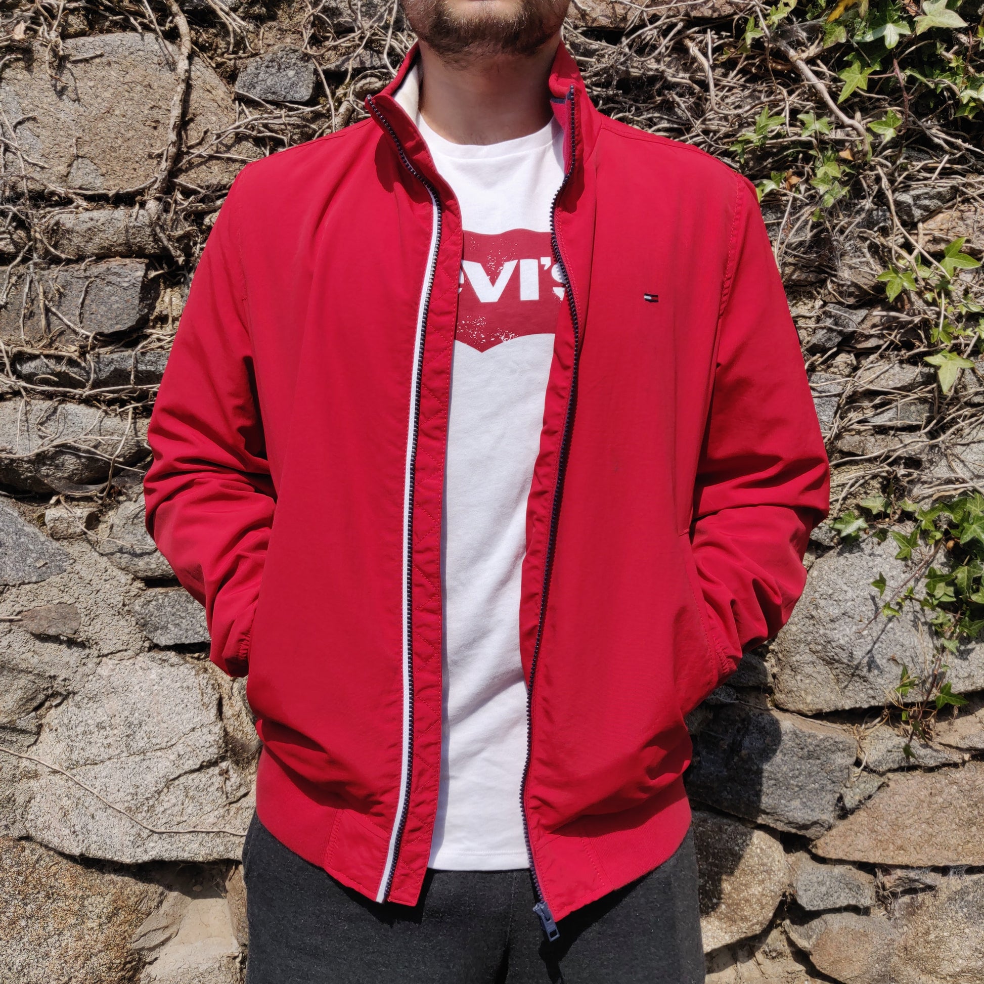 Tommy Hilfiger Jeans Red Full Zip Lightweight Bomber Jacket Men Size XL