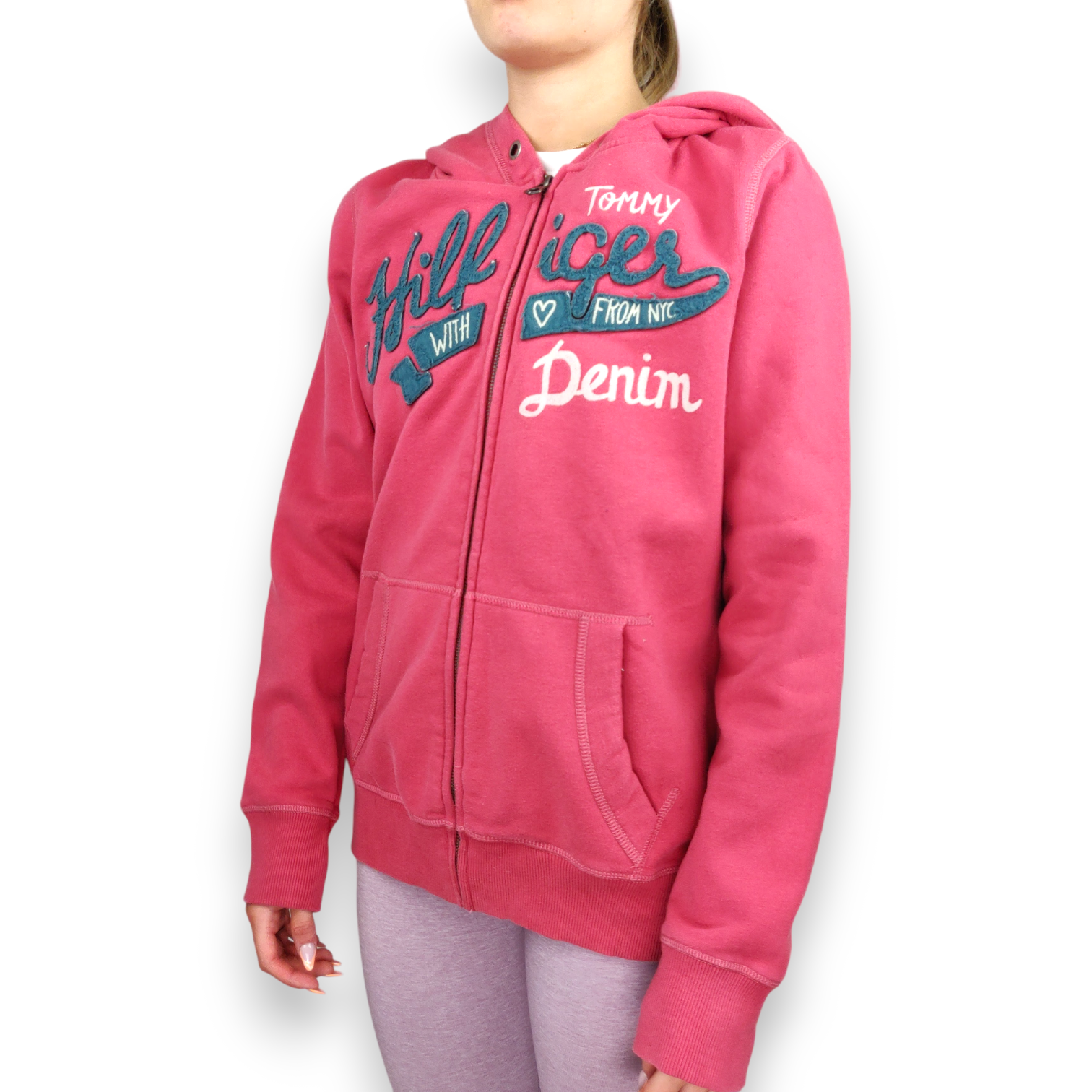 Tommy Hilfiger Pink Embroidered Full-Zip Hoodie Women Size Large