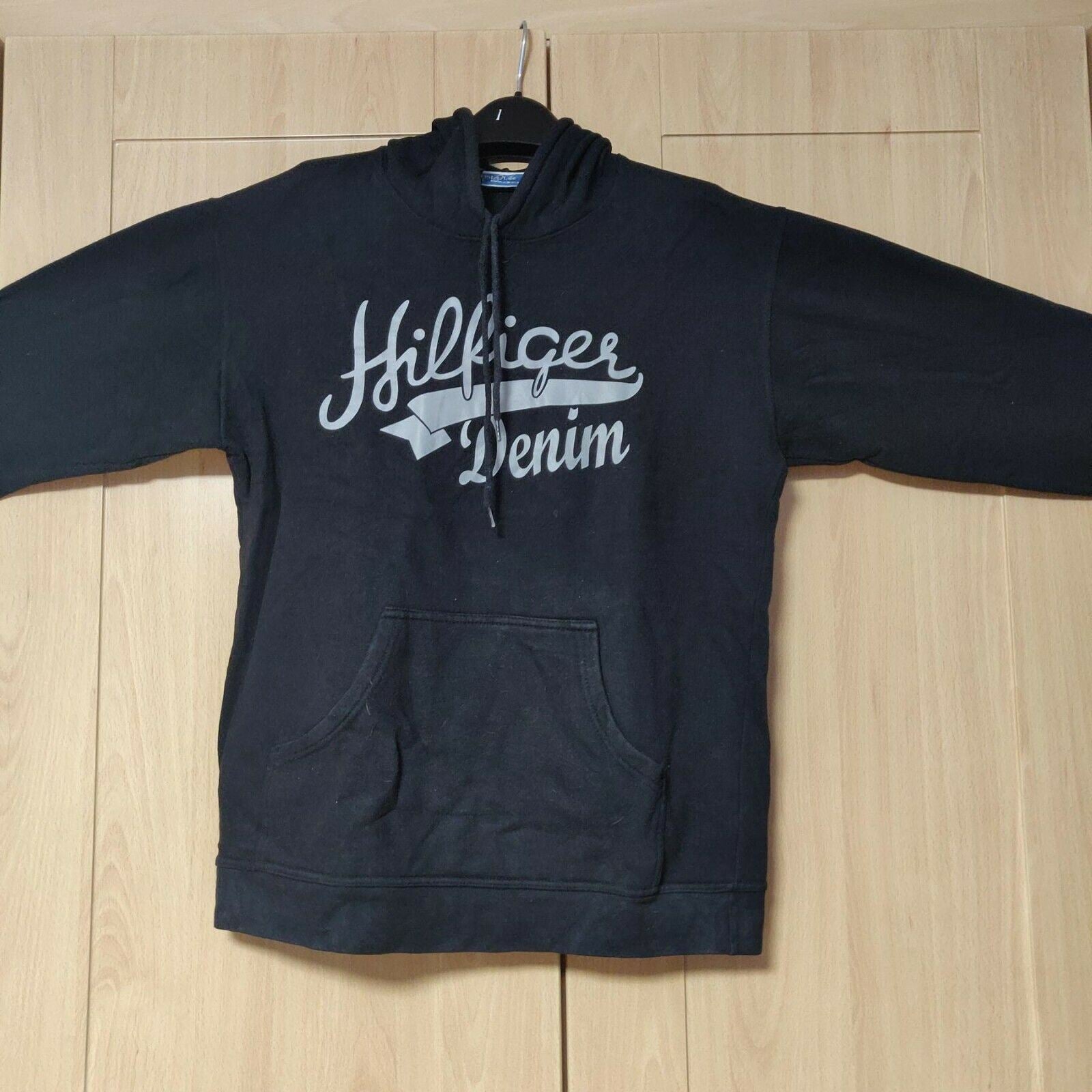Tommy Hilfiger Vintage Black Pullover Hoodie Men Size Large