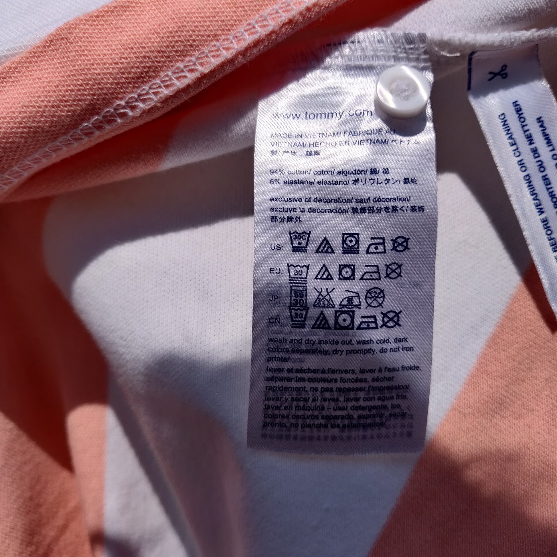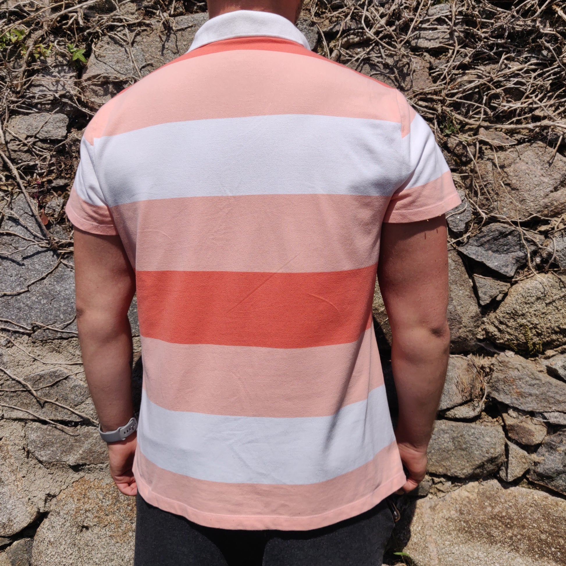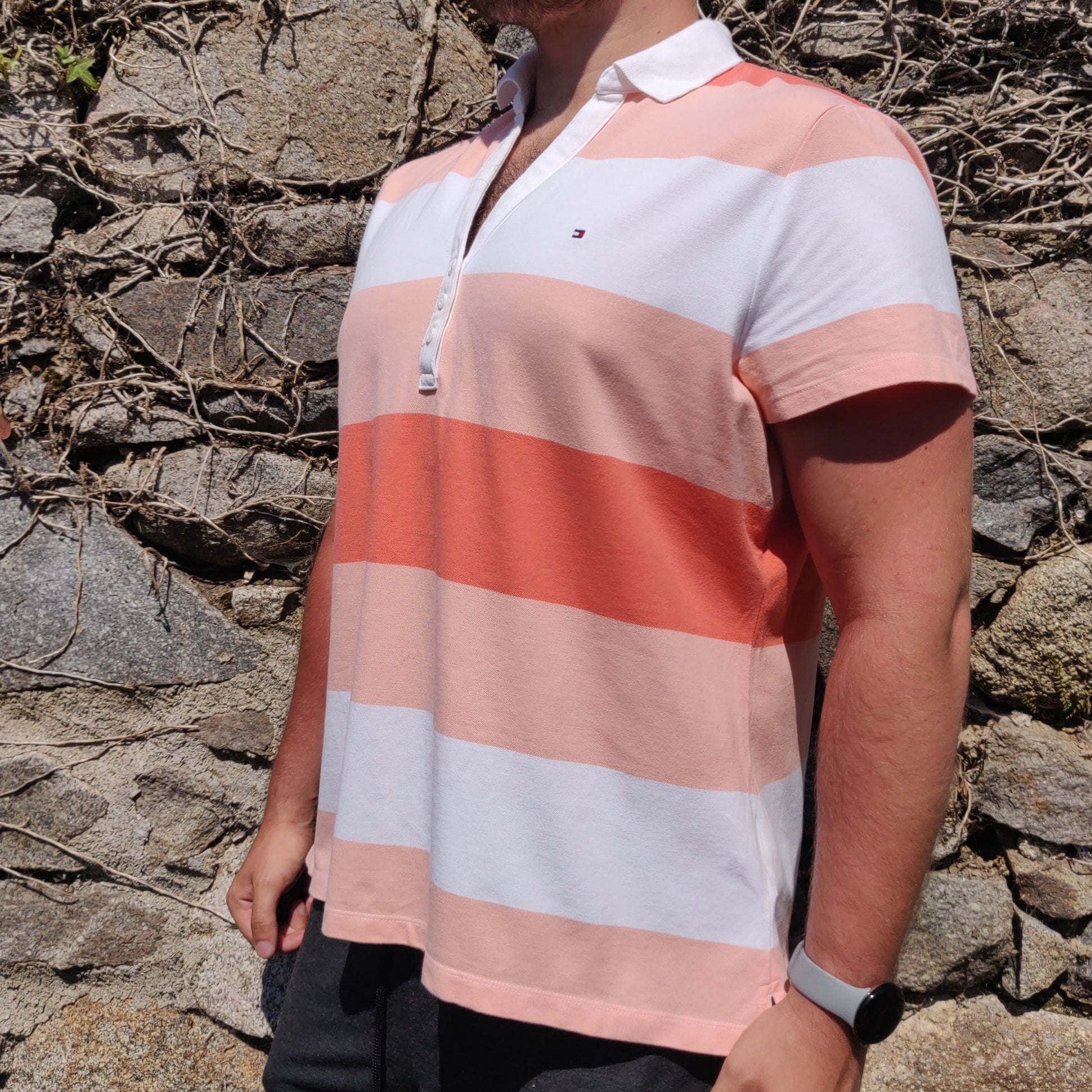 Tommy Hilfiger White Pink Striped Button Up Short Sleeve Polo Shirt Women Size 2XL