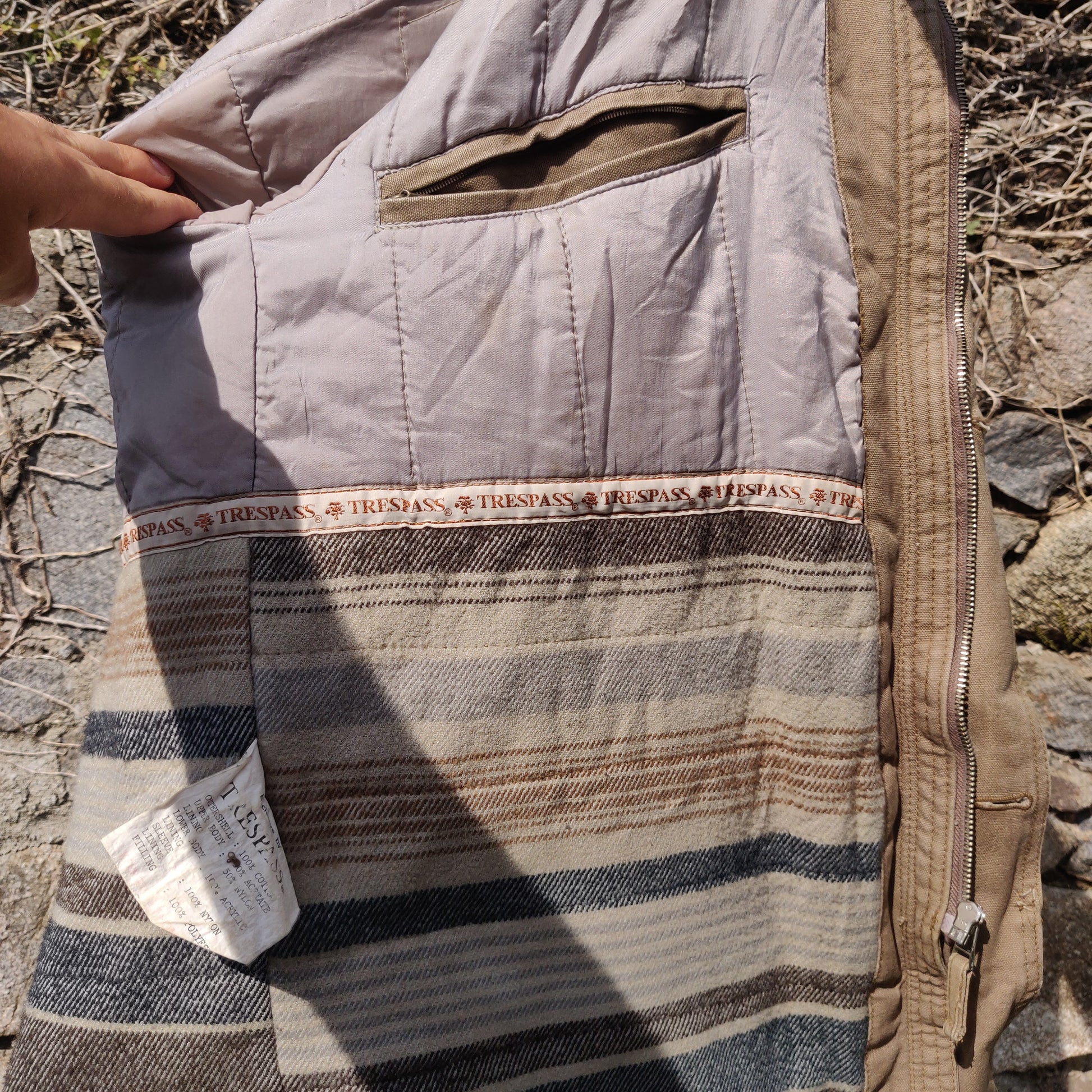 Trespass Vintage Beige Quilted Insulated Outdoor Coat Jacket Men Size Small