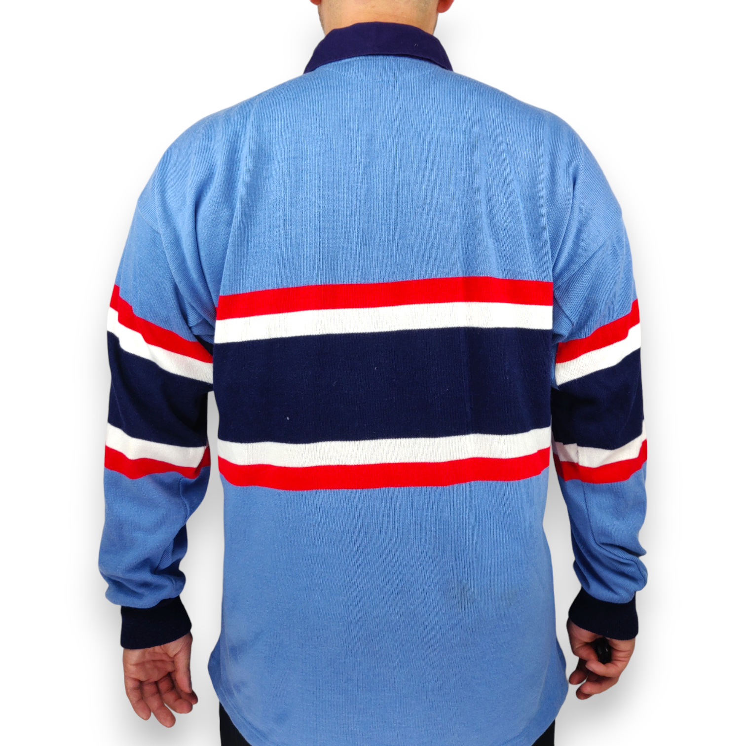 UNI JW Sport 2000 Midland Division Vintage Blue Rugby Polo Shirt Red Rose Men Size XL