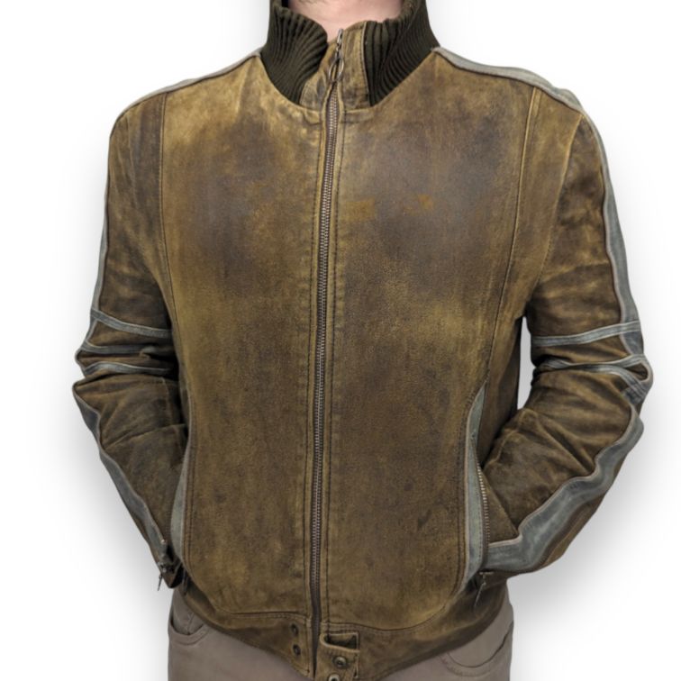 020 Vintage Brown Leather Bomber Jacket Men Size Large