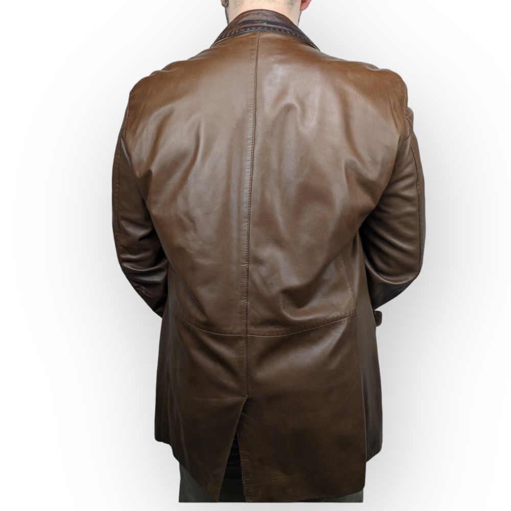 Vintage Brown Button Up Soft Sheep Leather Jacket Blazer Men Size Large