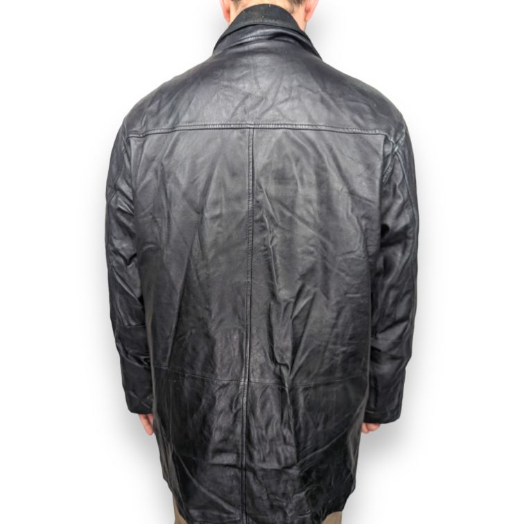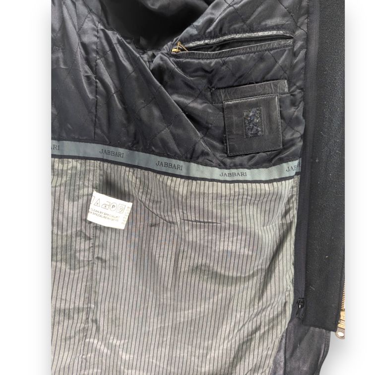 Jabbari Vintage Black Button Collar Real Leather Jacket Coat Men Size XL